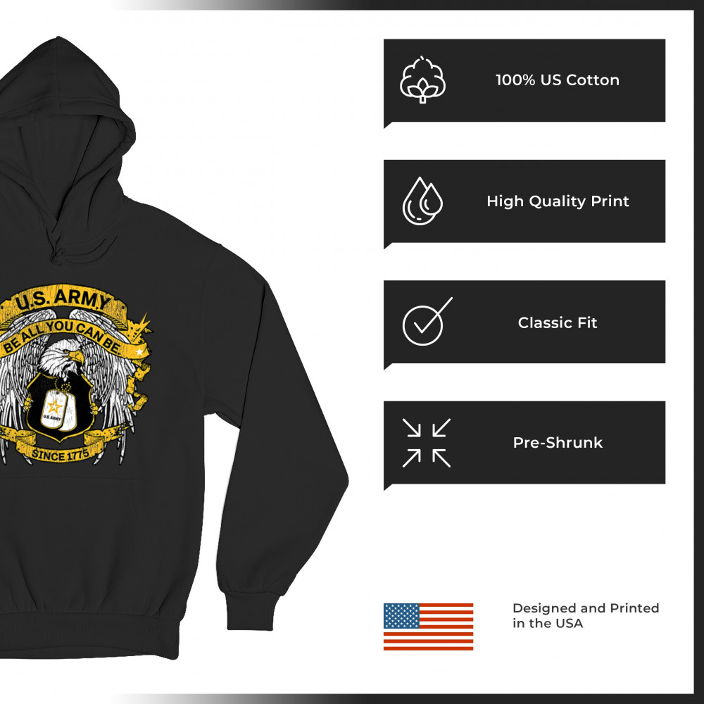 US ARMY EAGLE BE ALL YOU CAN BE sweatshirt military veteran patriotic hoodie black