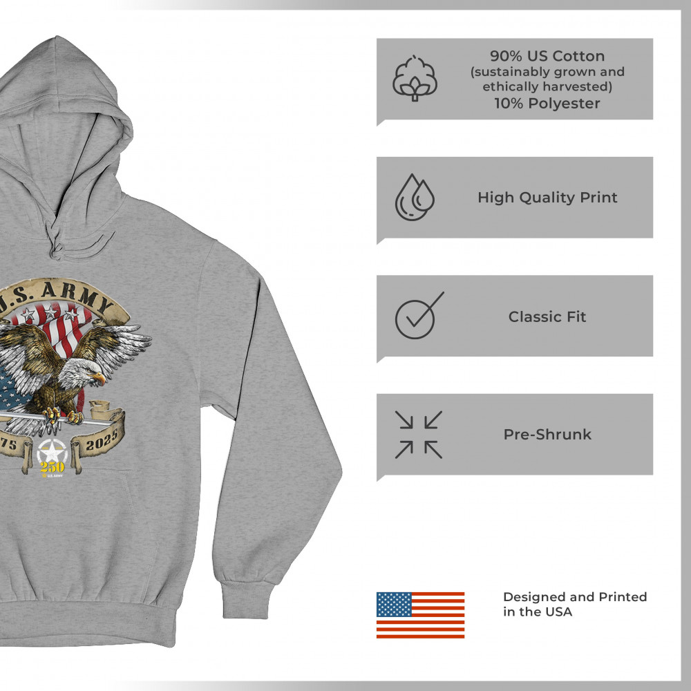 Celebrate the U.S. Army’s 250th Anniversary with patriotic eagle art, Army apparel, Veterans Day pride, and American freedom tribute.