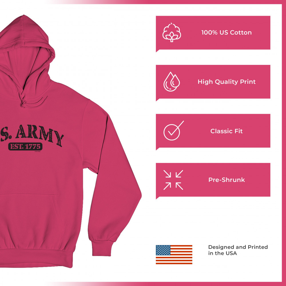 Our licensed U.S. Army design is a testament to the indomitable spirit of American service. It's a tribute to the valorous life and resilient history of those who've worn the uniform. This apparel honors every veteran's sacrifice and embodies the pride of military families. With each thread, feel the readiness and strength of our armed forces, and join in the patriotic celebration of our soldiers' duty and combat spirit.