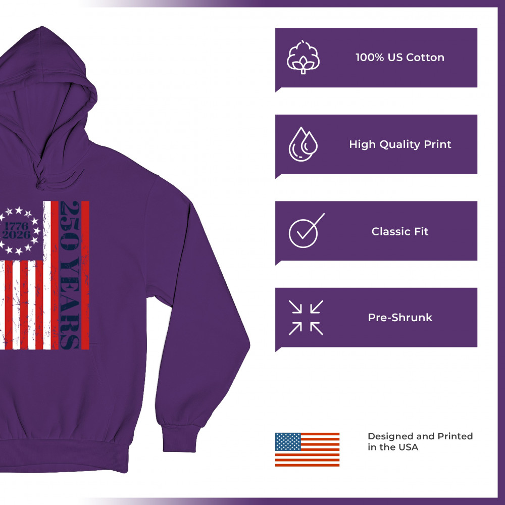 Celebrate USA 250 with patriotic flag shirt, America heritage 250, 1776–2026 milestone, American pride, and Independence Day freedom.