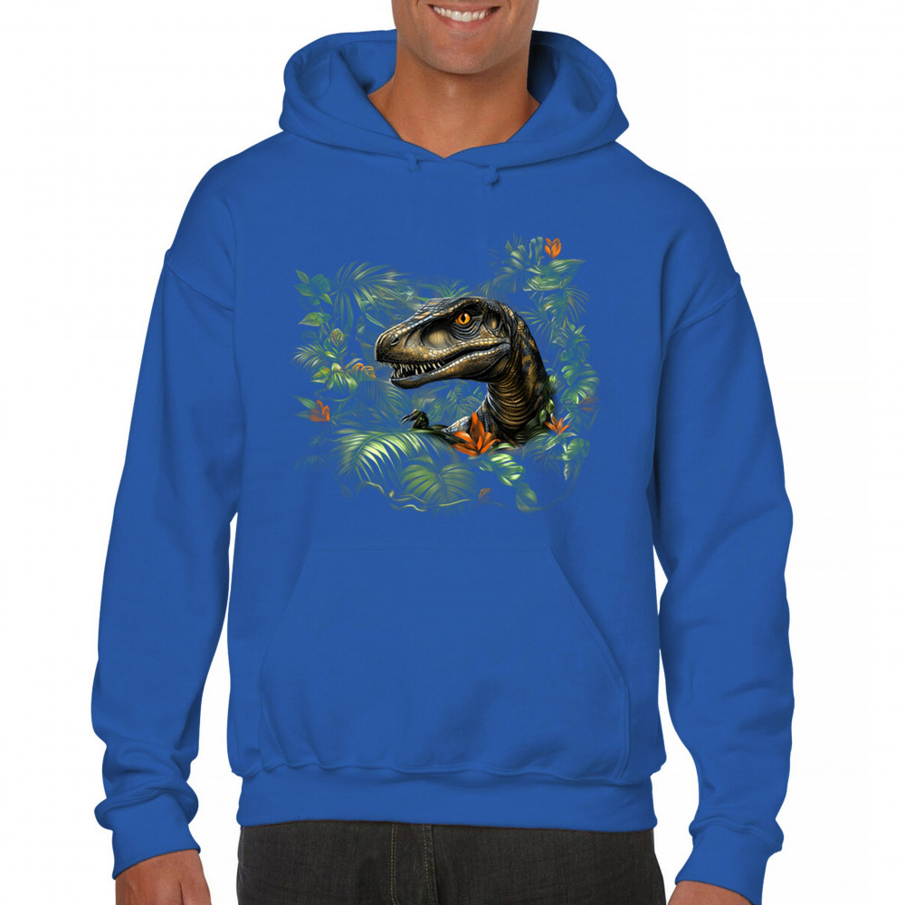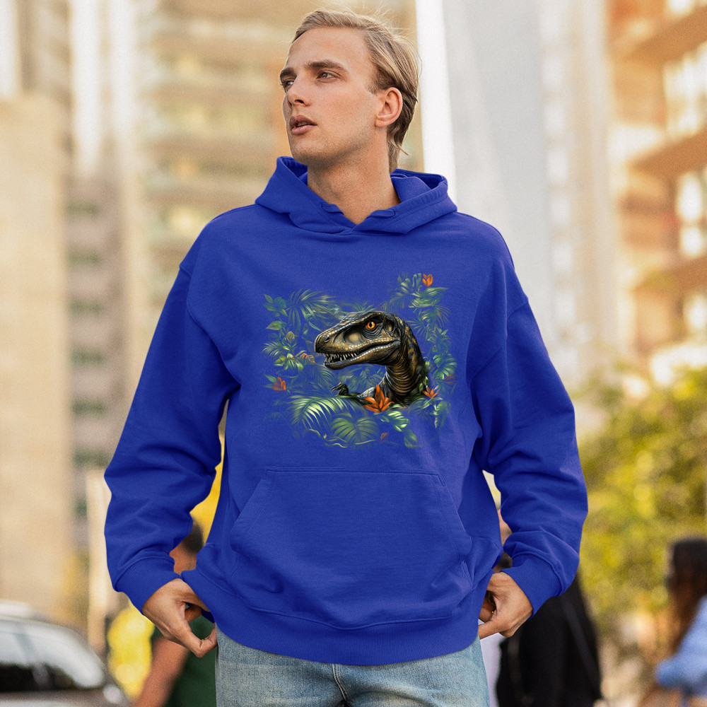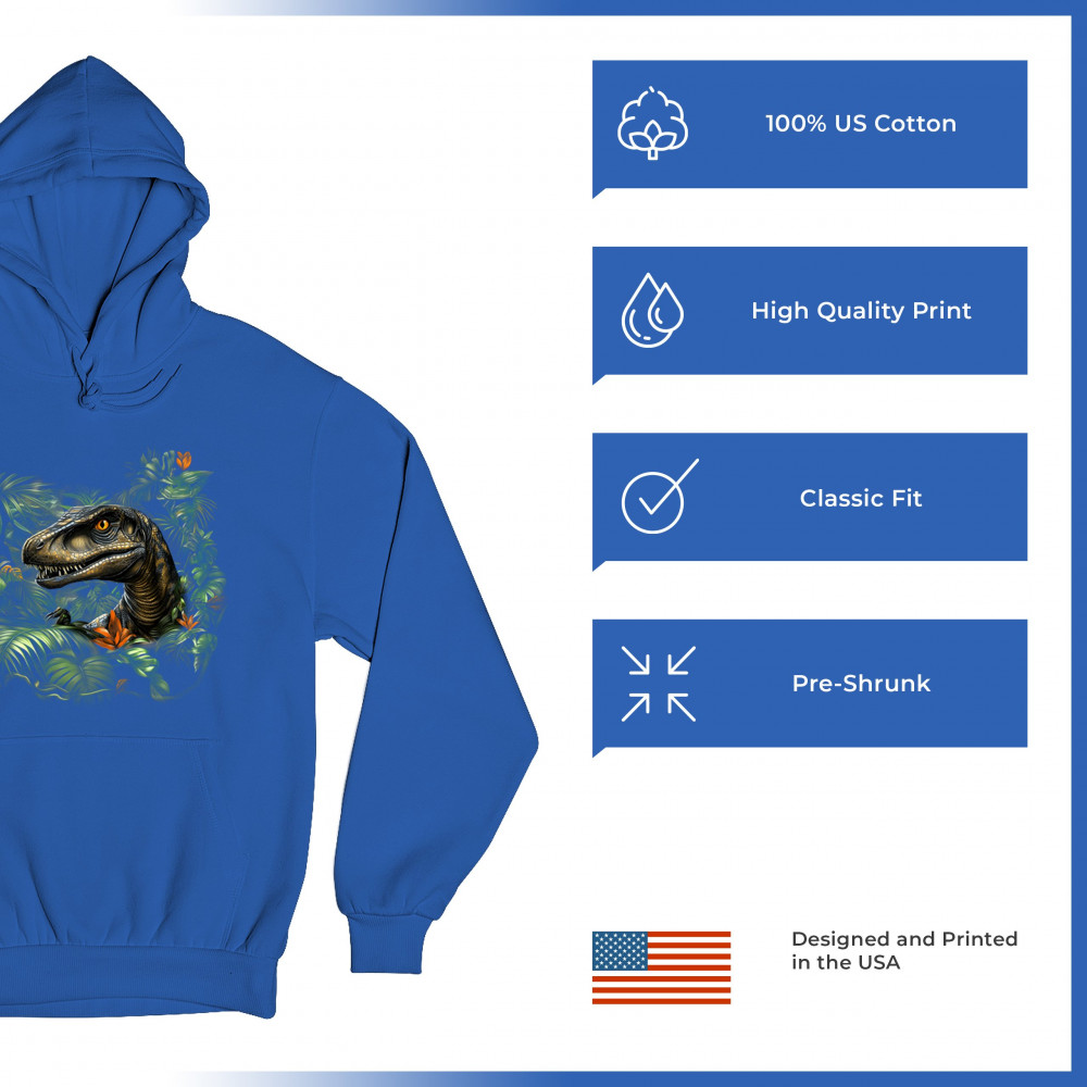 Step into the wild with this striking jungle raptor design. A highly detailed velociraptor peeks from vivid tropical foliage and flowers, perfect for dinosaur lovers, fossil fans, and ancient creature enthusiasts. Whether for Jurassic adventures, museum trips, or themed events, this design unleashes untamed prehistoric energy.