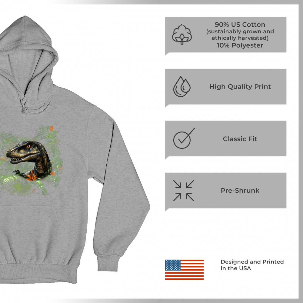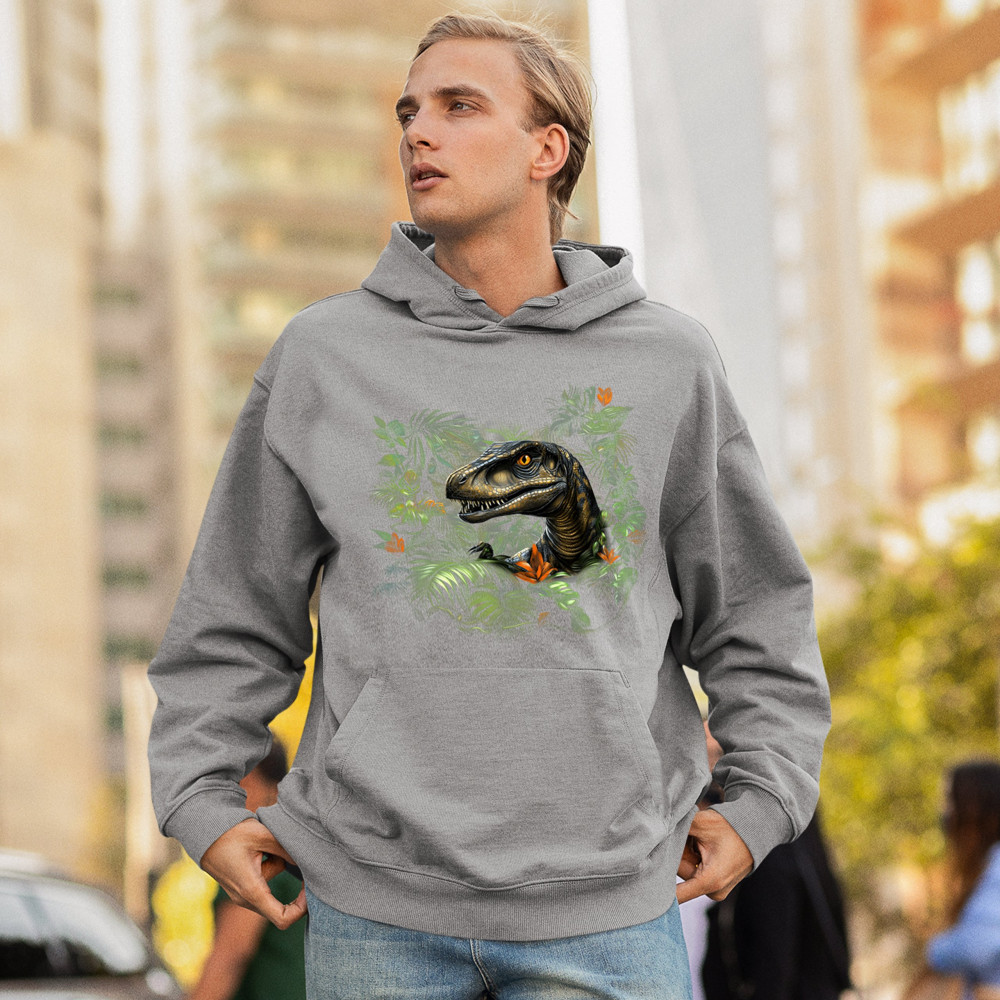 VELOCIRAPTOR JUNGLE sweatshirt dinosaur hunter jurassic raptor reptile hoodie gray