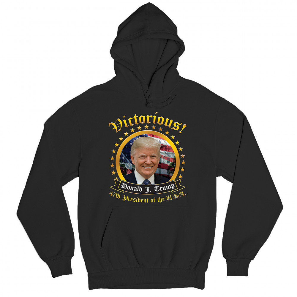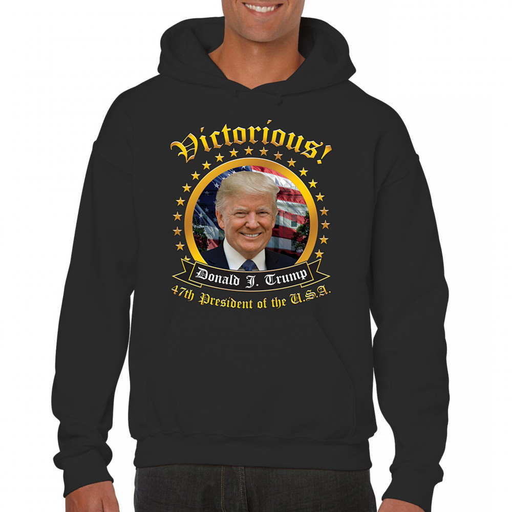 The "Victorious" design captures the spirit of Donald J. Trump’s victory as the 47th President, embodying the pride and patriotism of true American supporters. With elements of the American flag and an inspiring message, it’s a perfect symbol for Republicans, conservatives, and America First advocates. Celebrate the Red Wave and stand for a strong, united nation. Perfect for showing support at rallies, gatherings, or casual wear.