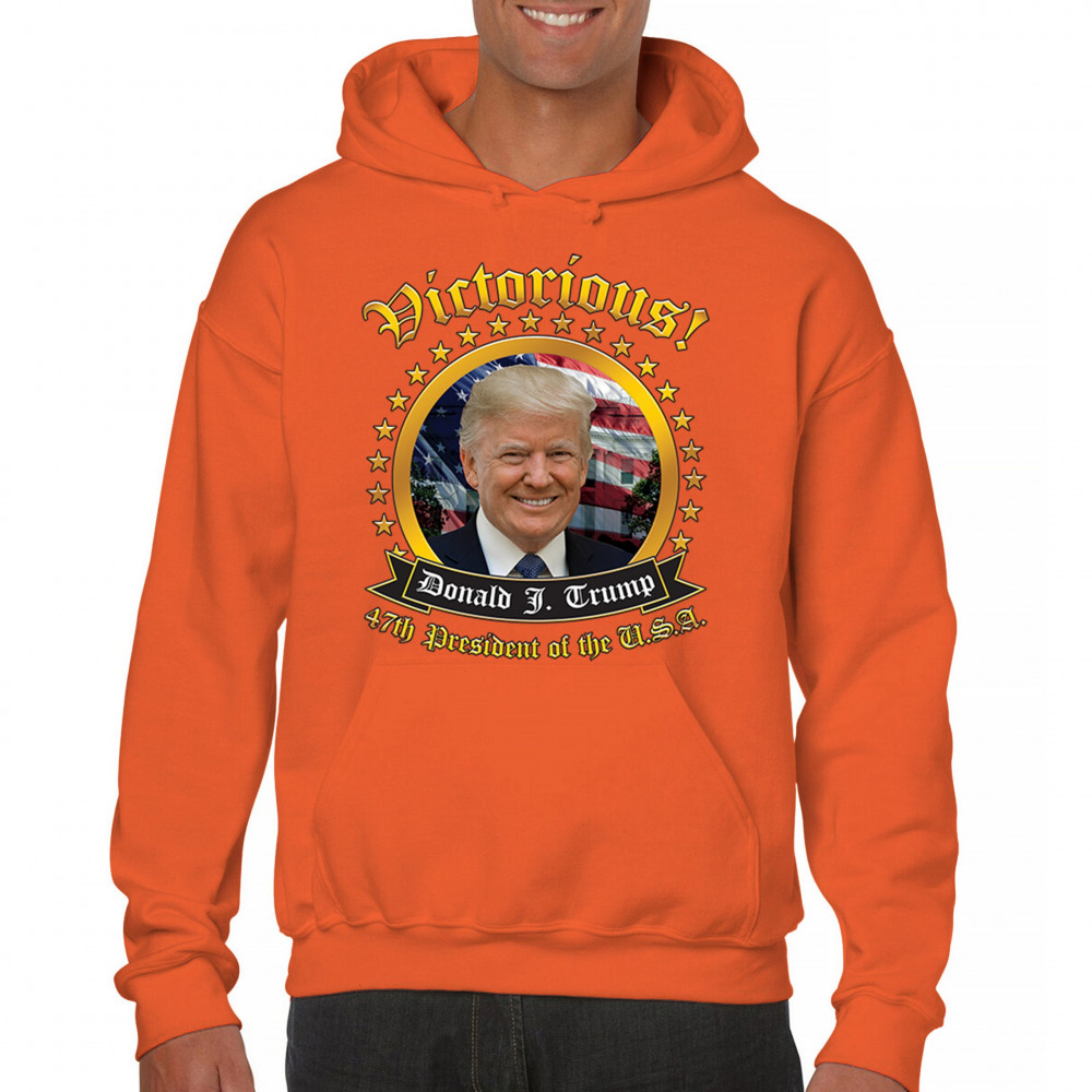 The "Victorious" design captures the spirit of Donald J. Trump’s victory as the 47th President, embodying the pride and patriotism of true American supporters. With elements of the American flag and an inspiring message, it’s a perfect symbol for Republicans, conservatives, and America First advocates. Celebrate the Red Wave and stand for a strong, united nation. Perfect for showing support at rallies, gatherings, or casual wear.