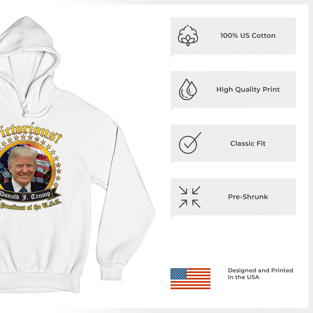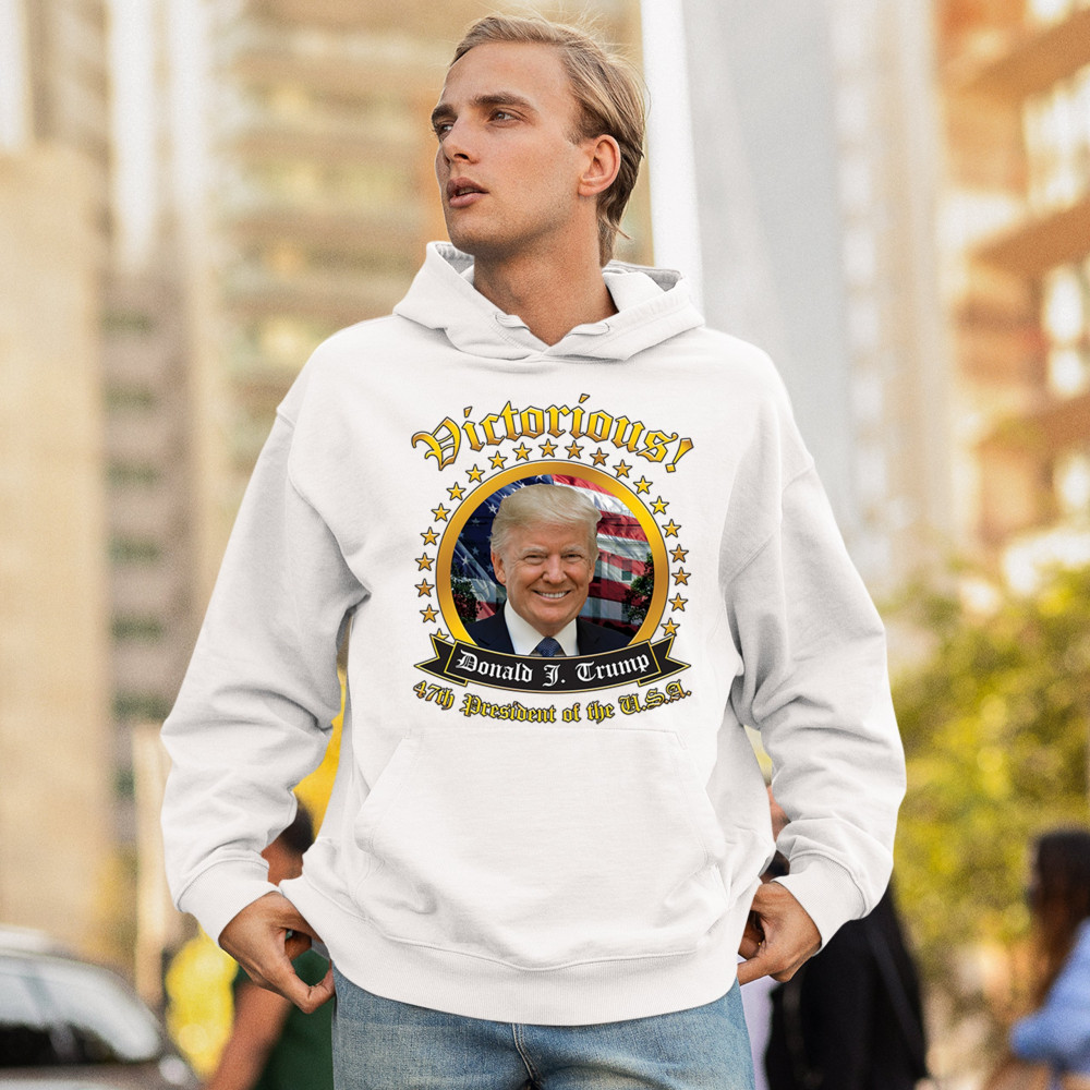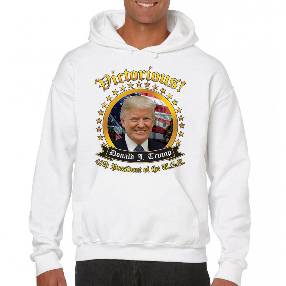 The "Victorious" design captures the spirit of Donald J. Trump’s victory as the 47th President, embodying the pride and patriotism of true American supporters. With elements of the American flag and an inspiring message, it’s a perfect symbol for Republicans, conservatives, and America First advocates. Celebrate the Red Wave and stand for a strong, united nation. Perfect for showing support at rallies, gatherings, or casual wear.