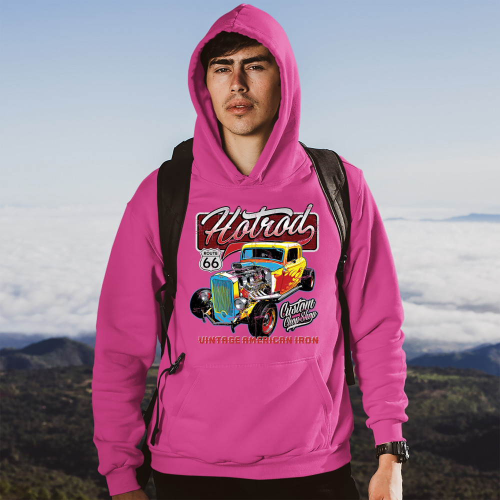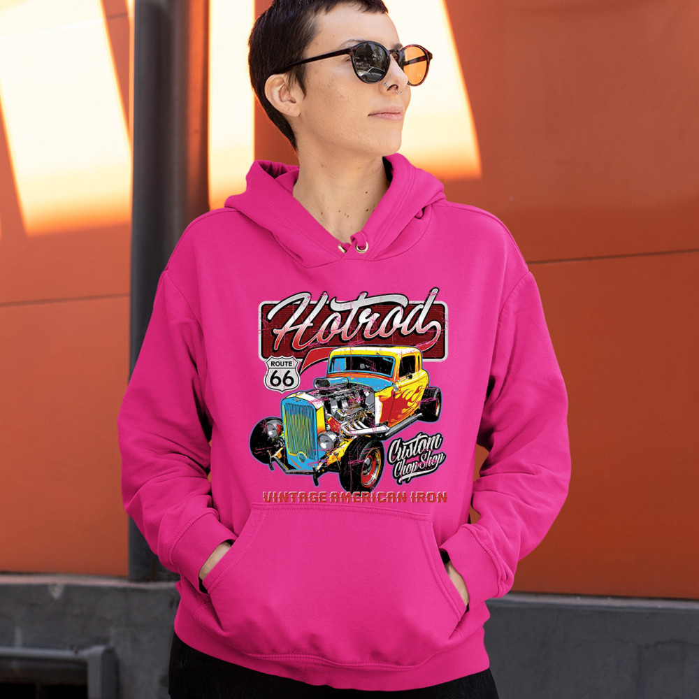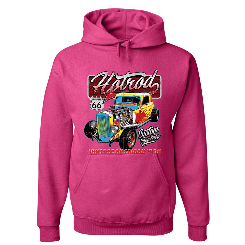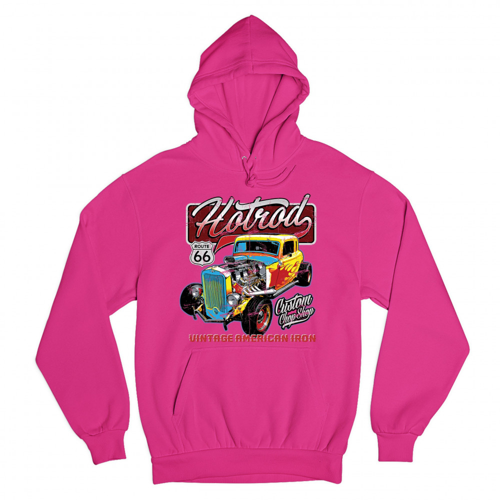 VINTAGE AMERICAN IRON sweatshirt hot rod route 66 retro racing hoodie pink