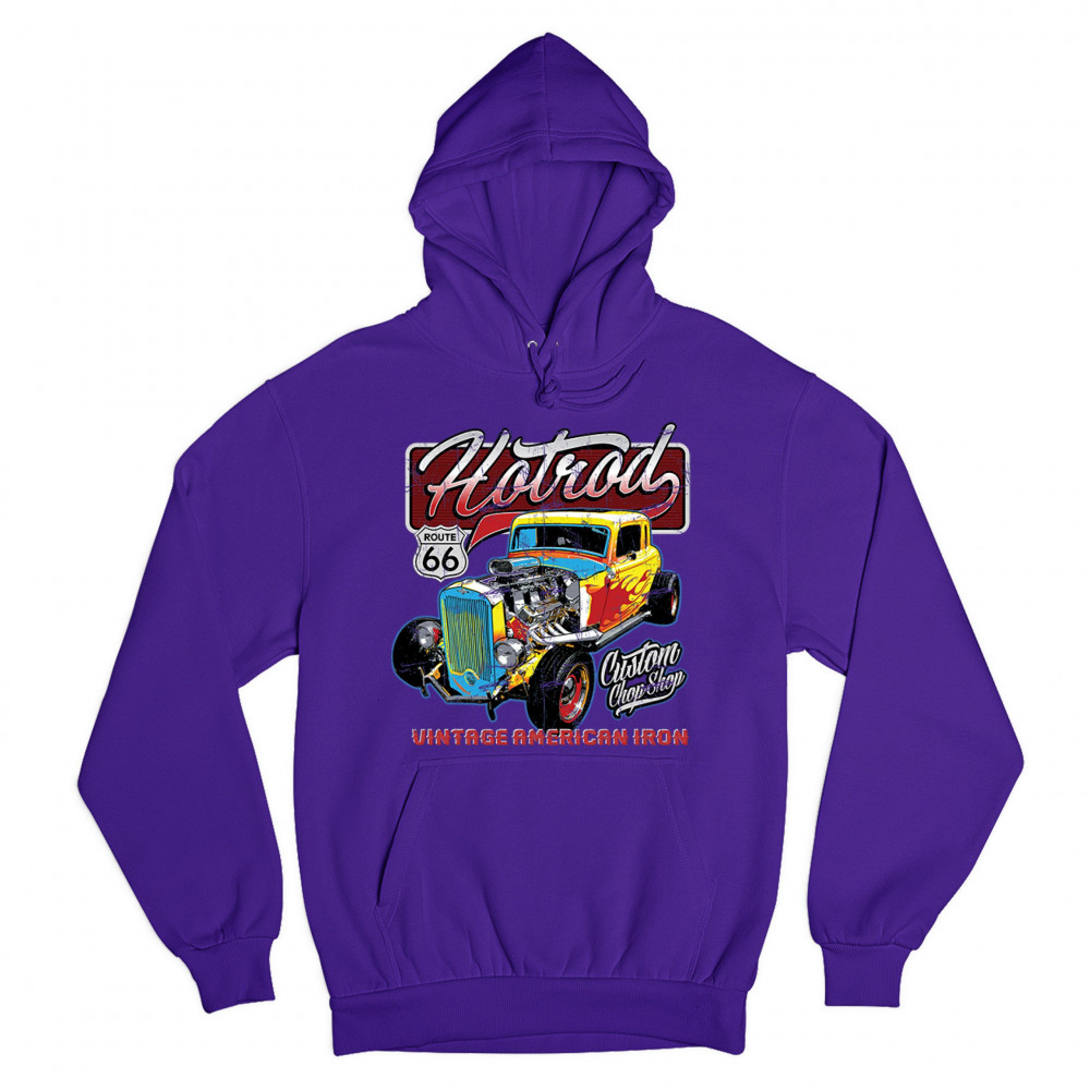 VINTAGE AMERICAN IRON sweatshirt hot rod route 66 retro racing hoodie purple