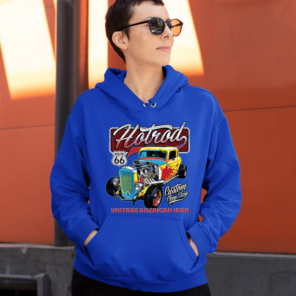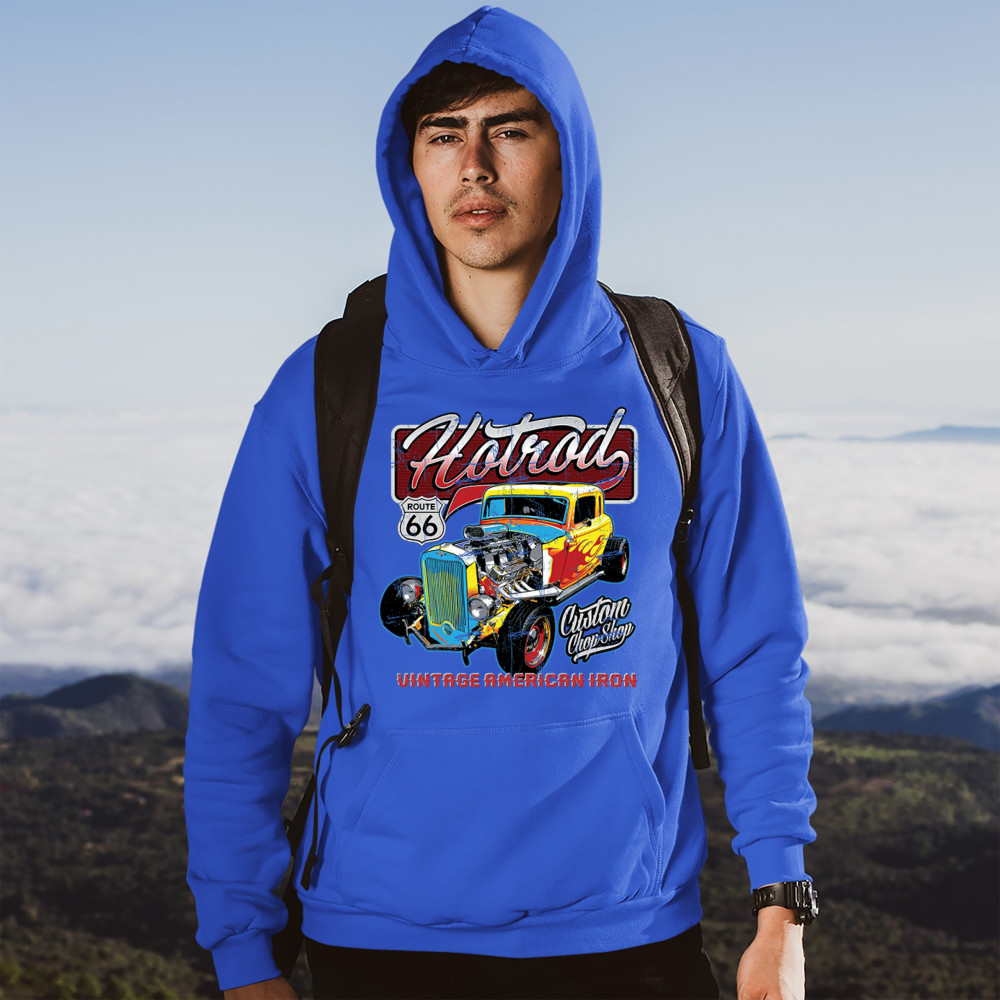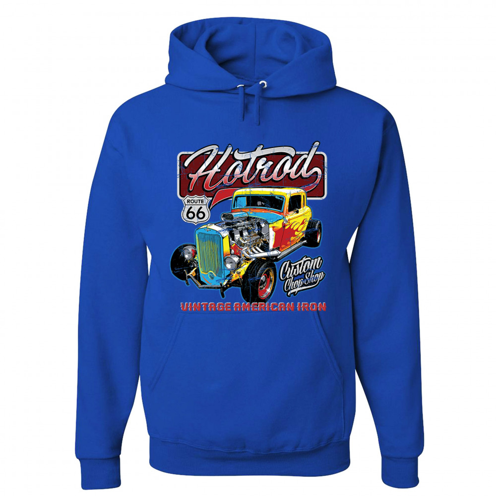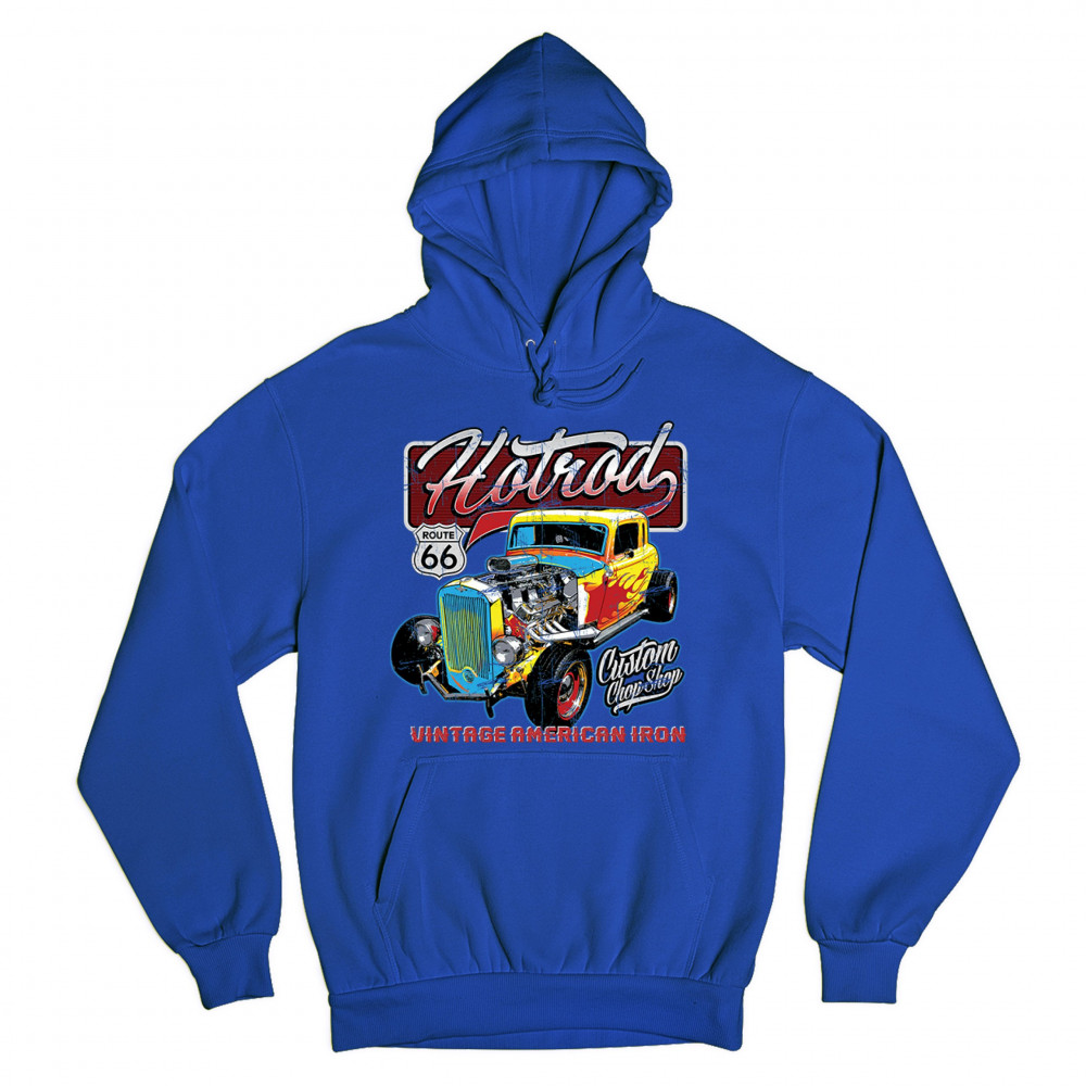 VINTAGE AMERICAN IRON sweatshirt hot rod route 66 retro racing hoodie royal blue