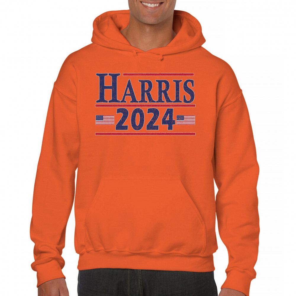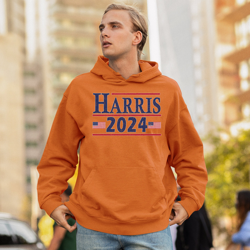 Show your support for Kamala Harris with this bold "Harris 2024" t-shirt, featuring American flags. Perfect for rallies and events. Join the movement today!
