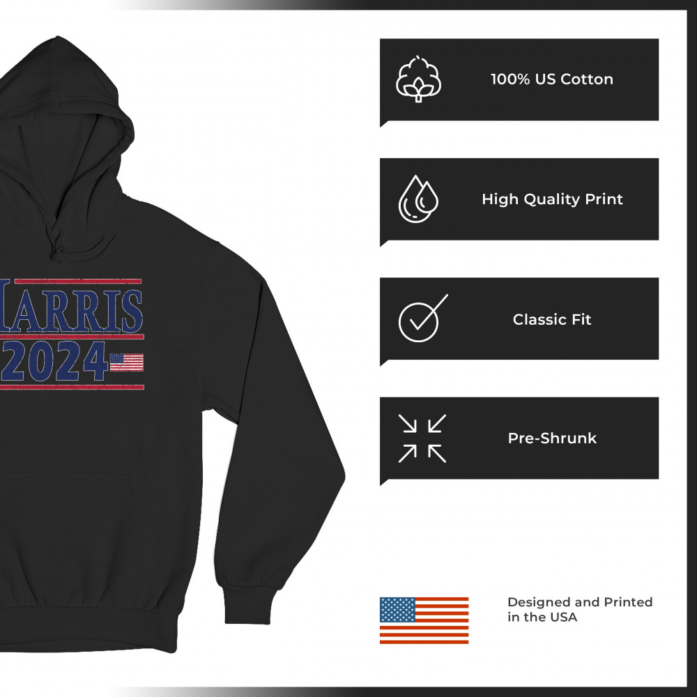 Show your support for Kamala Harris with this bold "Harris 2024" t-shirt, featuring American flags. Perfect for rallies and events. Join the movement today!