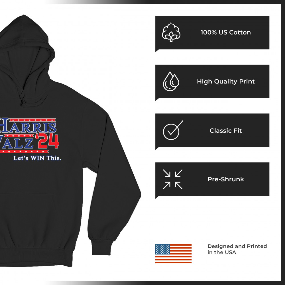 Express your support for Kamala Harris and Tim Walz in the 2024 election with this dynamic and patriotic design. Perfect for rally participants, dedicated supporters, and advocates of liberal values, this design captures the essence of the campaign. Highlighting America First, women's rights, and LGBTQ+ equality, it symbolizes the fight for victory and justice. Trust in government and join the rebelution against conservative agendas. Stand with Kamala and Walz for a brighter future. Let's win this together in 2024. Let's Win This.