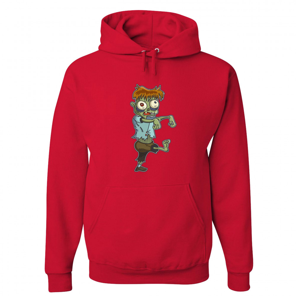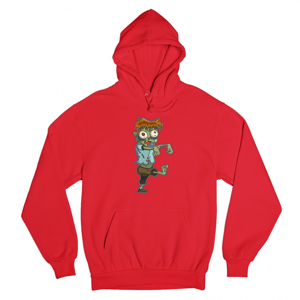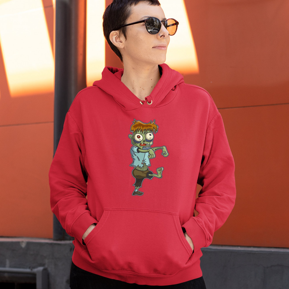 A print featuring a zombie, walking in a stereotypical movie fashion with the arms extended forward. The zombie has messy ginger hair and eyes popping out but he looks rather funny and non-threatening. A great choice for a person who is into horror movies