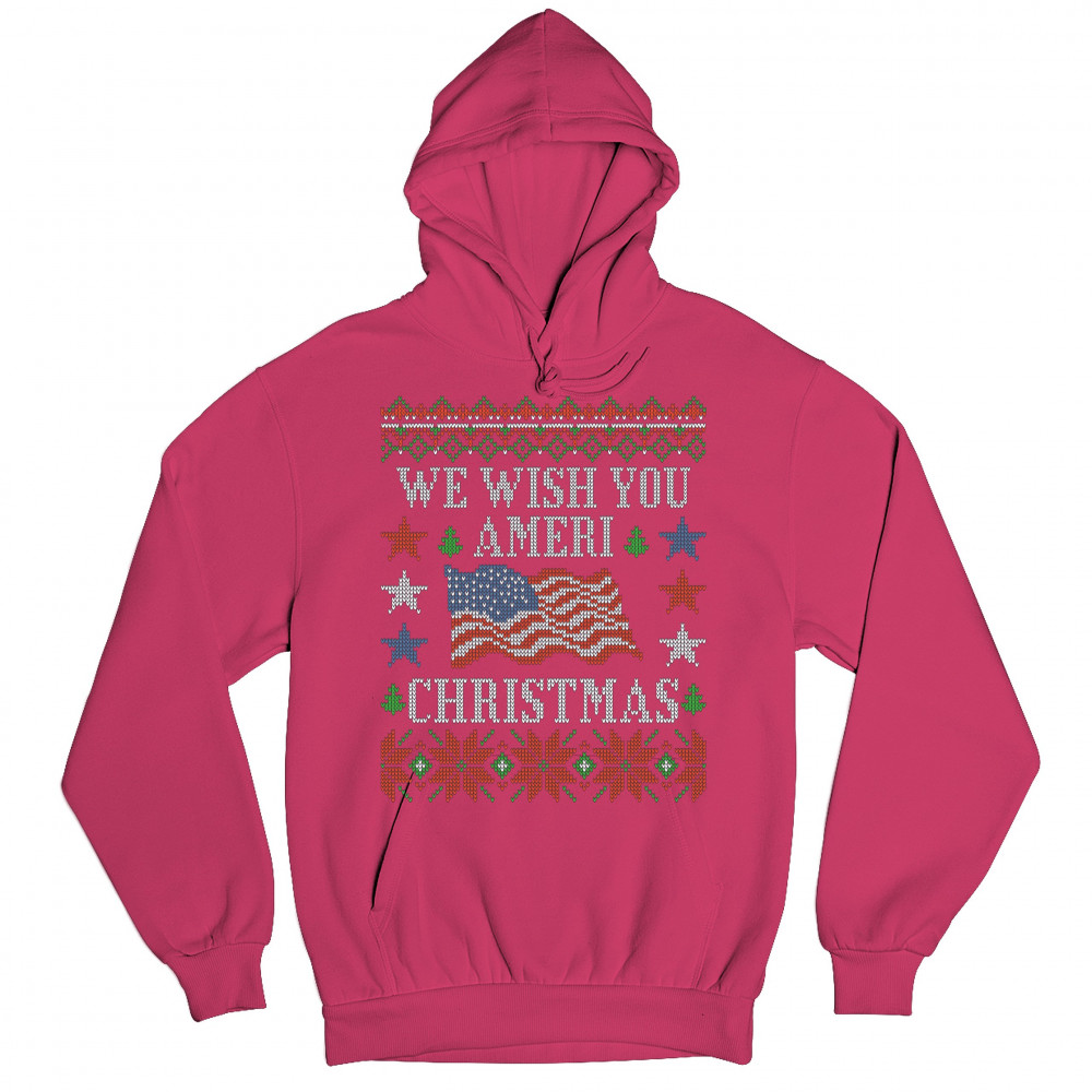 WE WISH YOU AMERI CHRISTMAS sweatshirt ugly sweater american flag hoodie pink