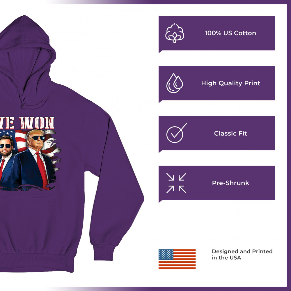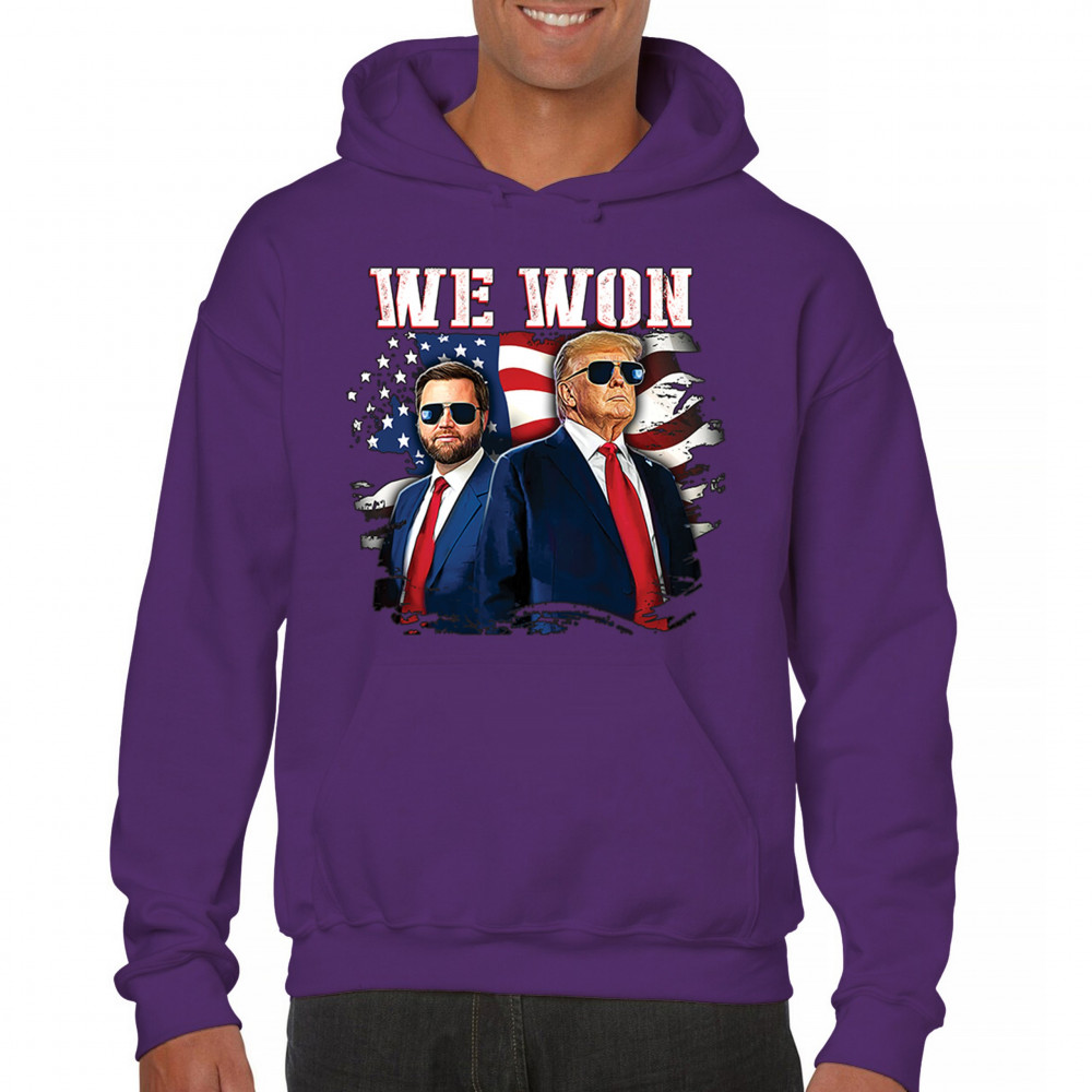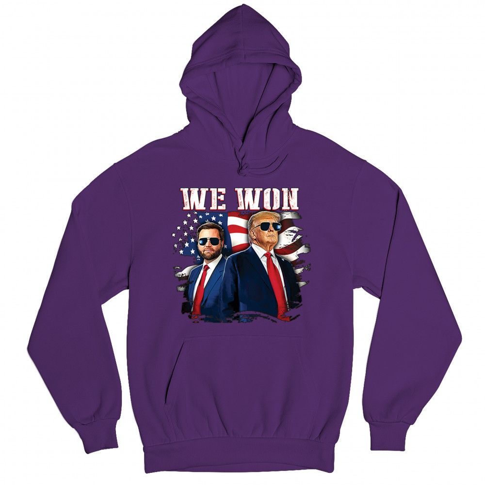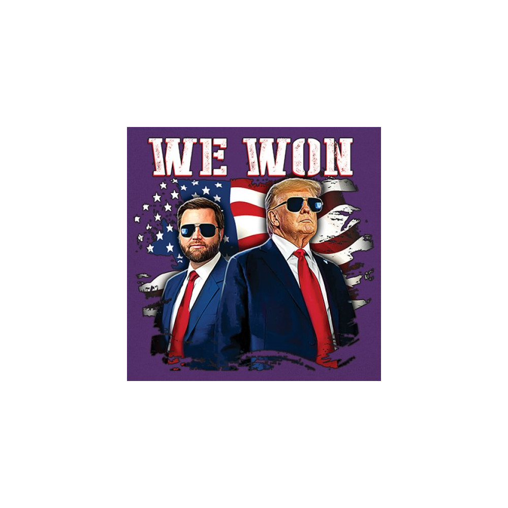 Celebrate Republican victory with this bold "We Won" design featuring Trump and patriotic flair—perfect for rallies, events, and patriotic pride.