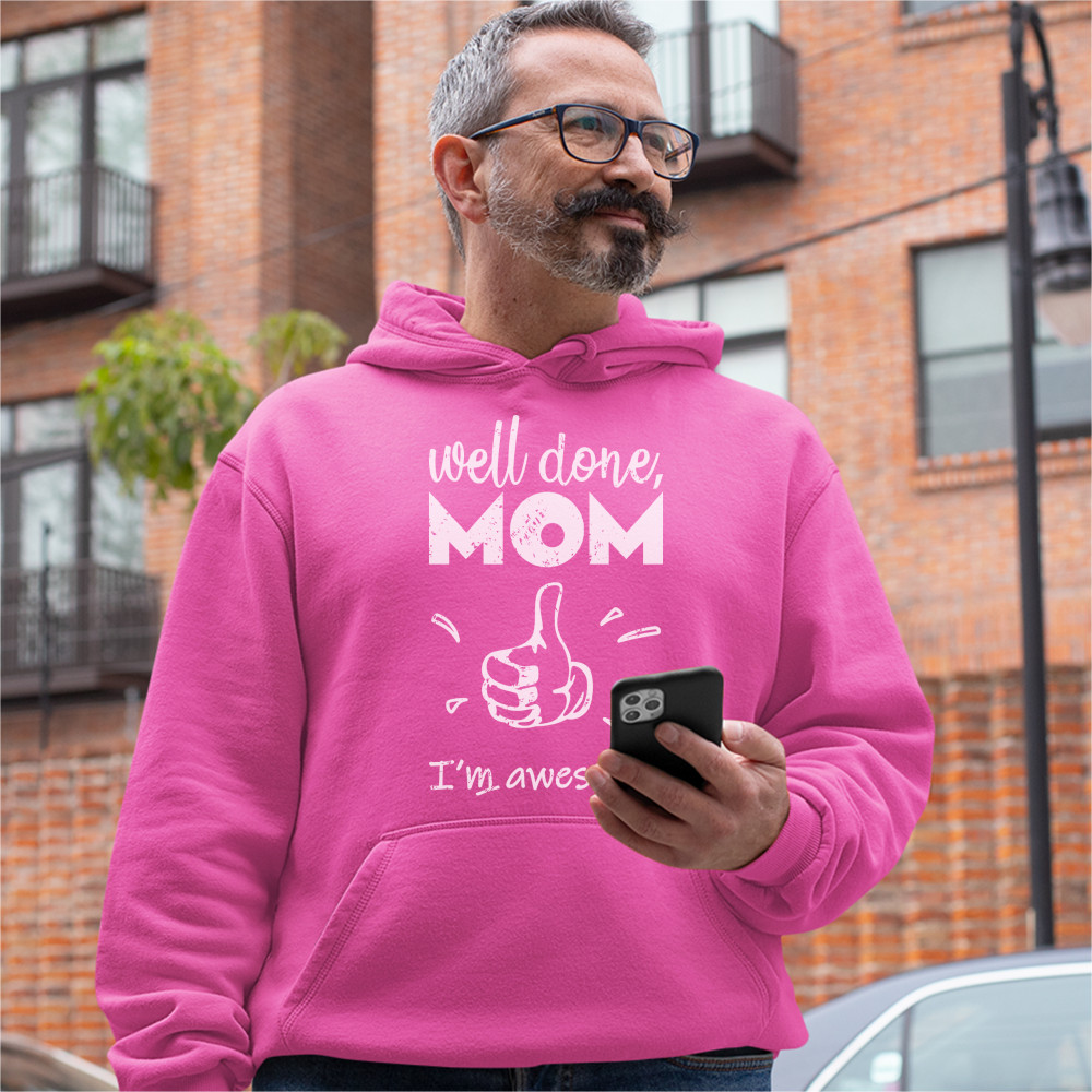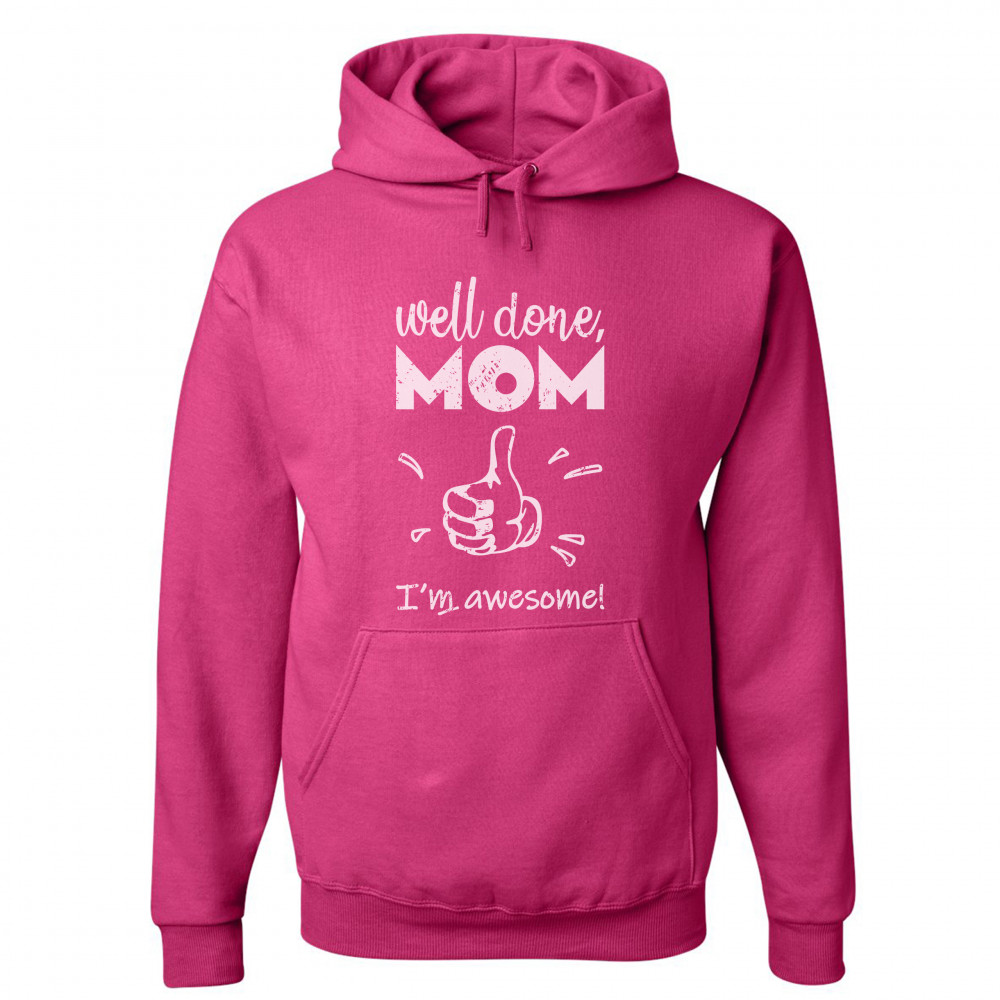 WELL DONE MOM I'M AWESOME sweatshirt mother's day i love you mom mommy hoodie hot pink
