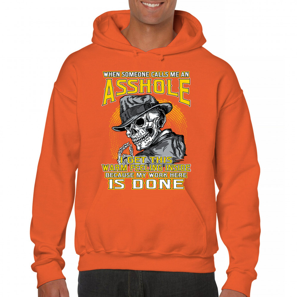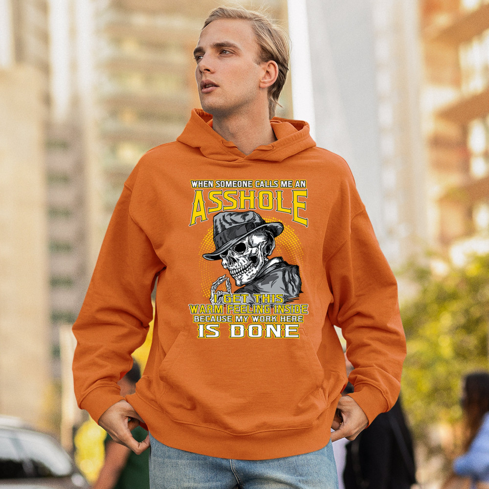 This badass design features a smirking skull in a fedora with a cigarette, backed by the line: “When someone calls me an asshole... my work here is done.†Built for dark humor fans, skull art lovers, and those who live life with sharp wit and zero regrets. Ideal for biker rallies, sarcasm nights, or anyone owning their attitude with pride.