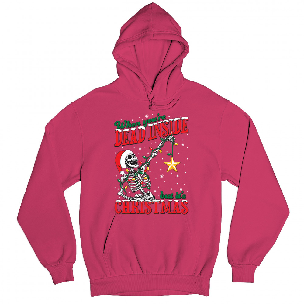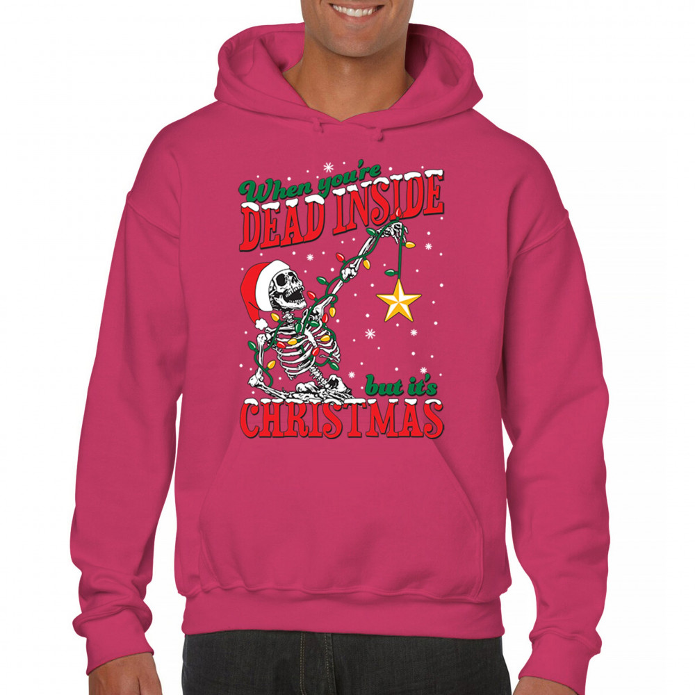 Bring humor and uniqueness to your holiday wardrobe with the "When You're Dead Inside But It's Christmas" design. This quirky creation features a skeleton embracing the festive spirit with colorful lights, a Santa hat, and a glowing star. Ideal for Secret Santa exchanges, ugly sweater parties, or anyone who loves blending a touch of humor with Christmas tradition. Celebrate the season in style with this unforgettable design.