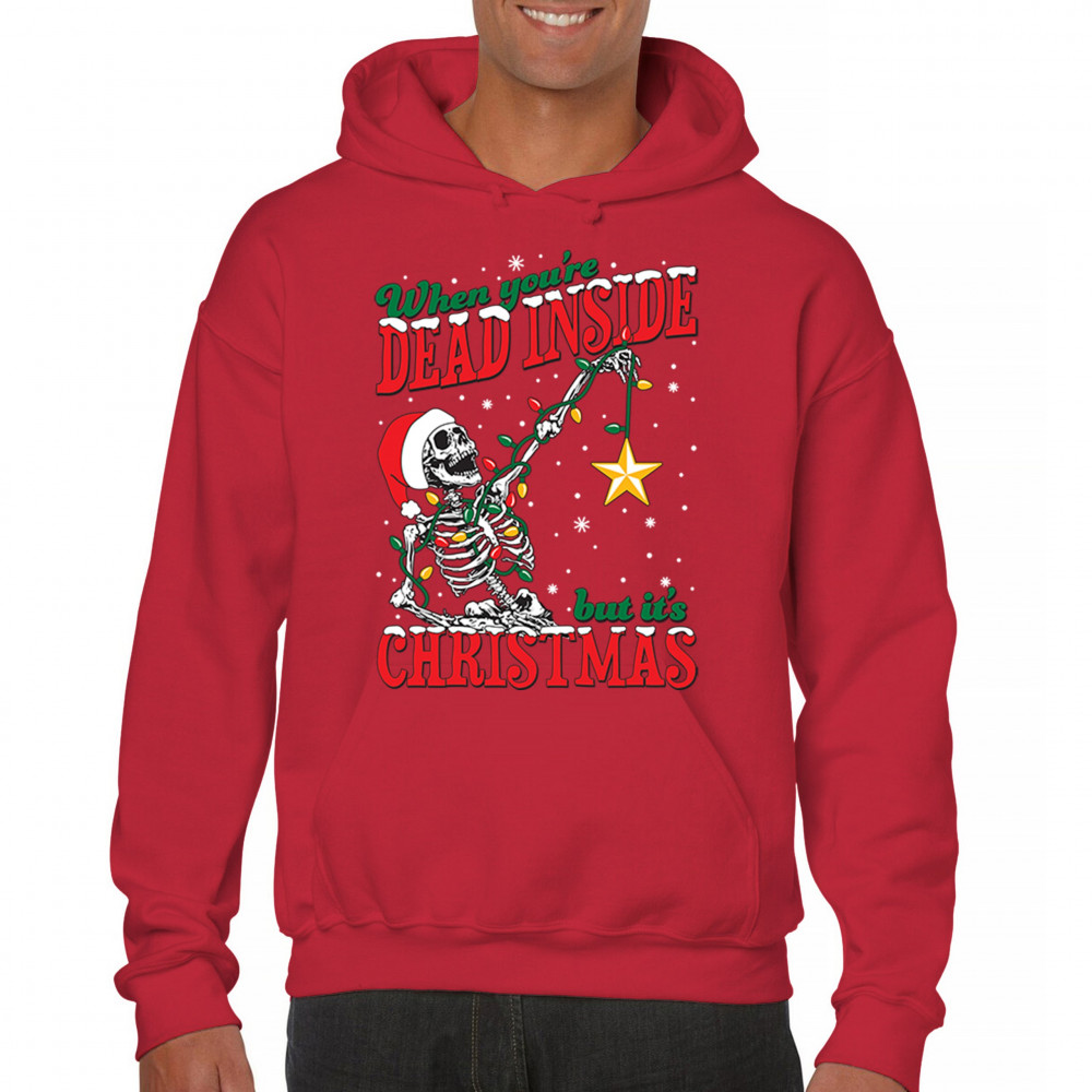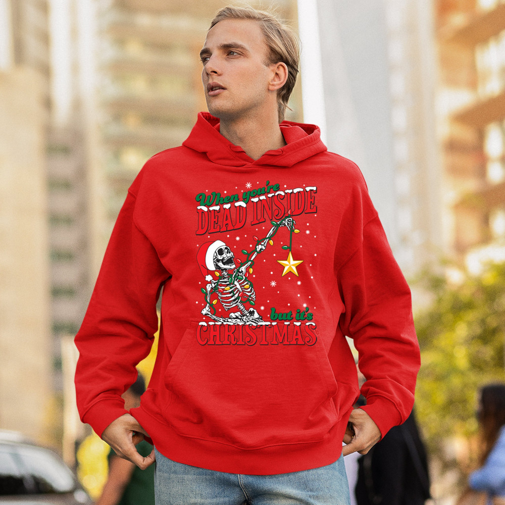 Celebrate humor and holiday spirit with the "When You're Dead Inside But It's Christmas" skeleton design. Perfect for parties and unique gifts.