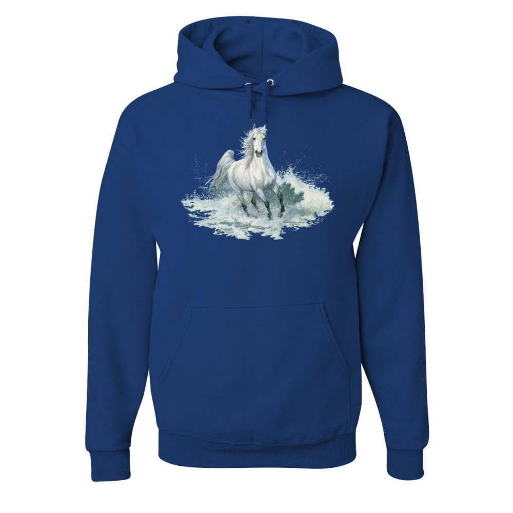 WHITE HORSE SPLASHING WATER hoodie animal wild nature mustang sweatshirt royal blue
