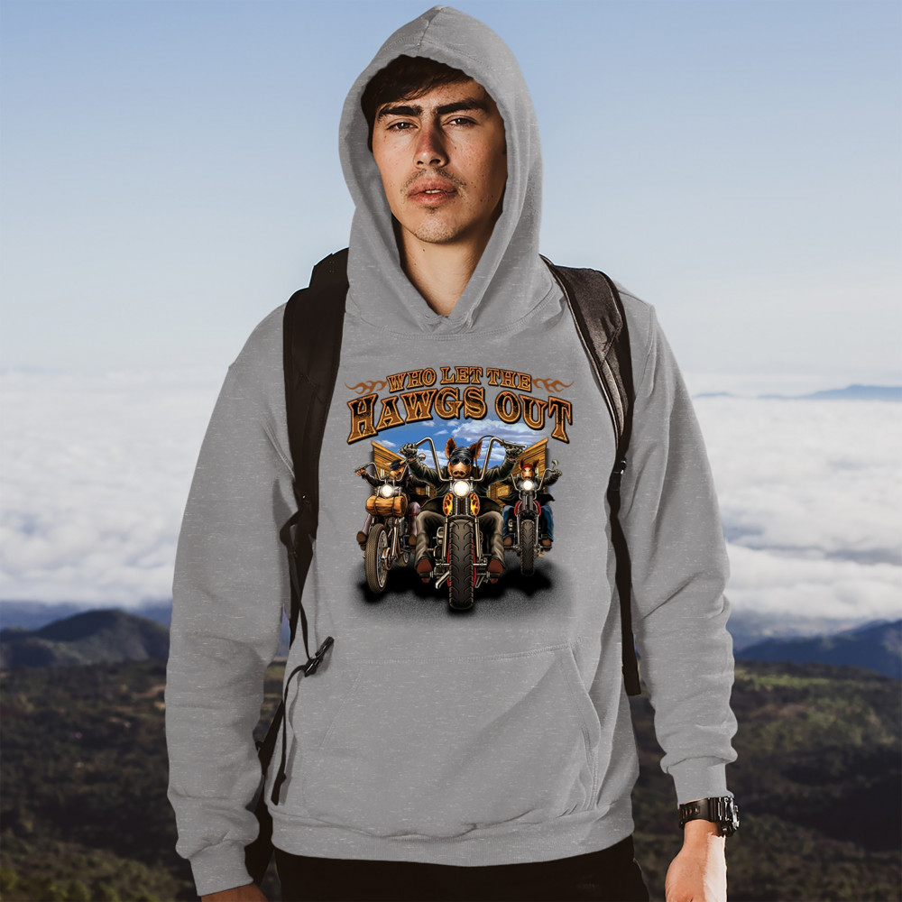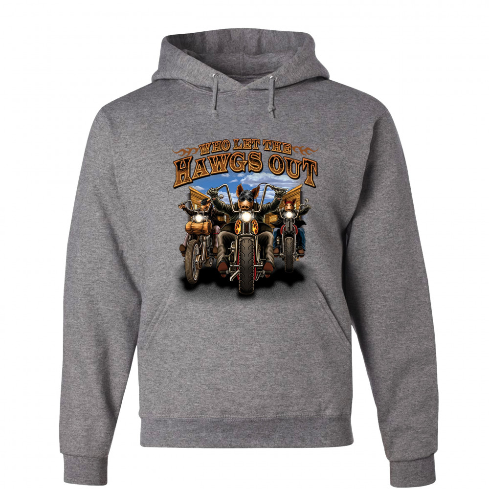 WHO LET THE HAWGS OUT sweatshirt biker motorcycle gang live to ride hoodie gray