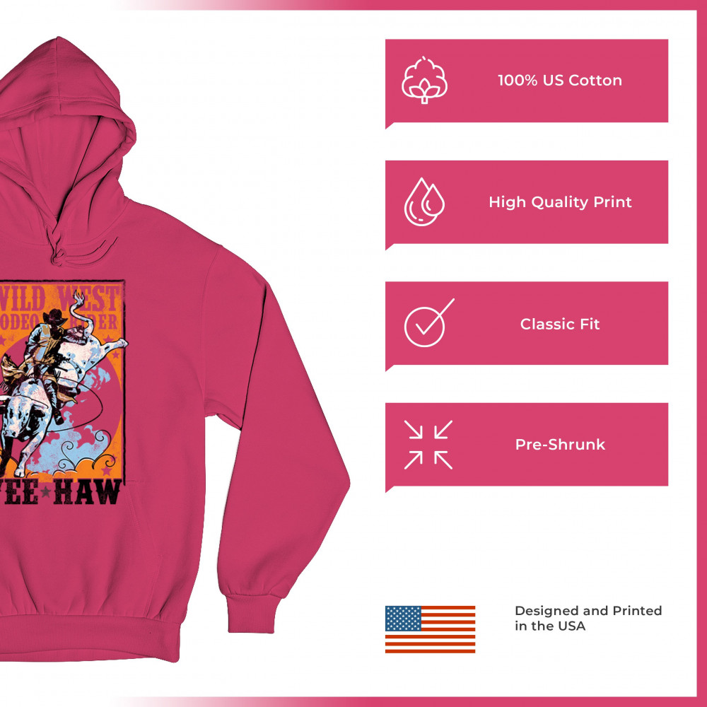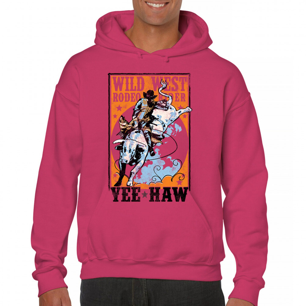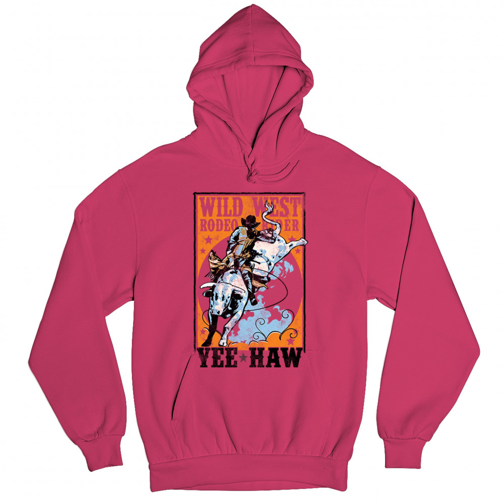 WILD WEST RODEO RIDER unisex hoodie bull riding cowboy ranch country life pink