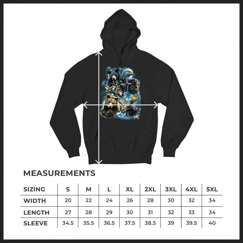 Celebrate the untamed beauty of the wilderness with this powerful design showcasing North America’s most iconic animals—moose, wolf, grizzly, black bear, bison, eagle, and deer. Packed with forest energy and rich detail, this piece honors rugged mountain life, animal strength, and a deep respect for wild nature.