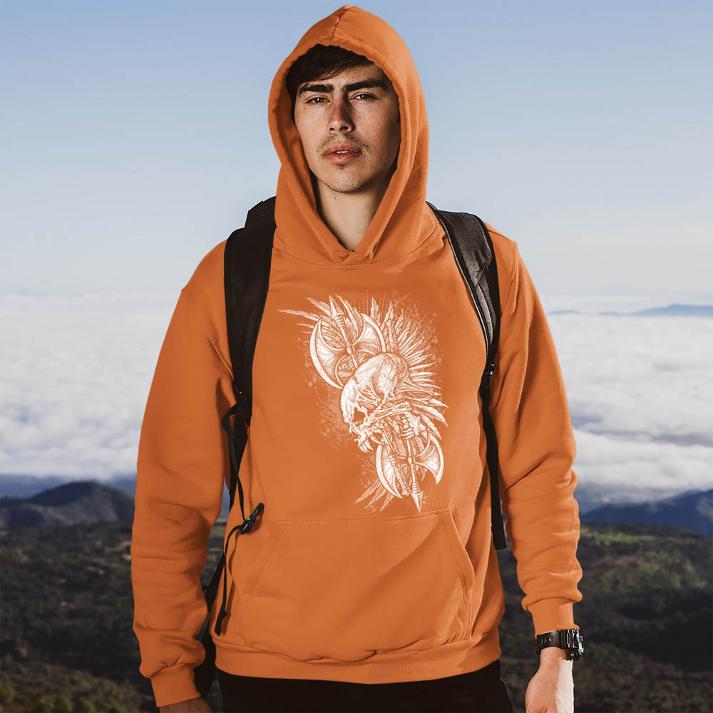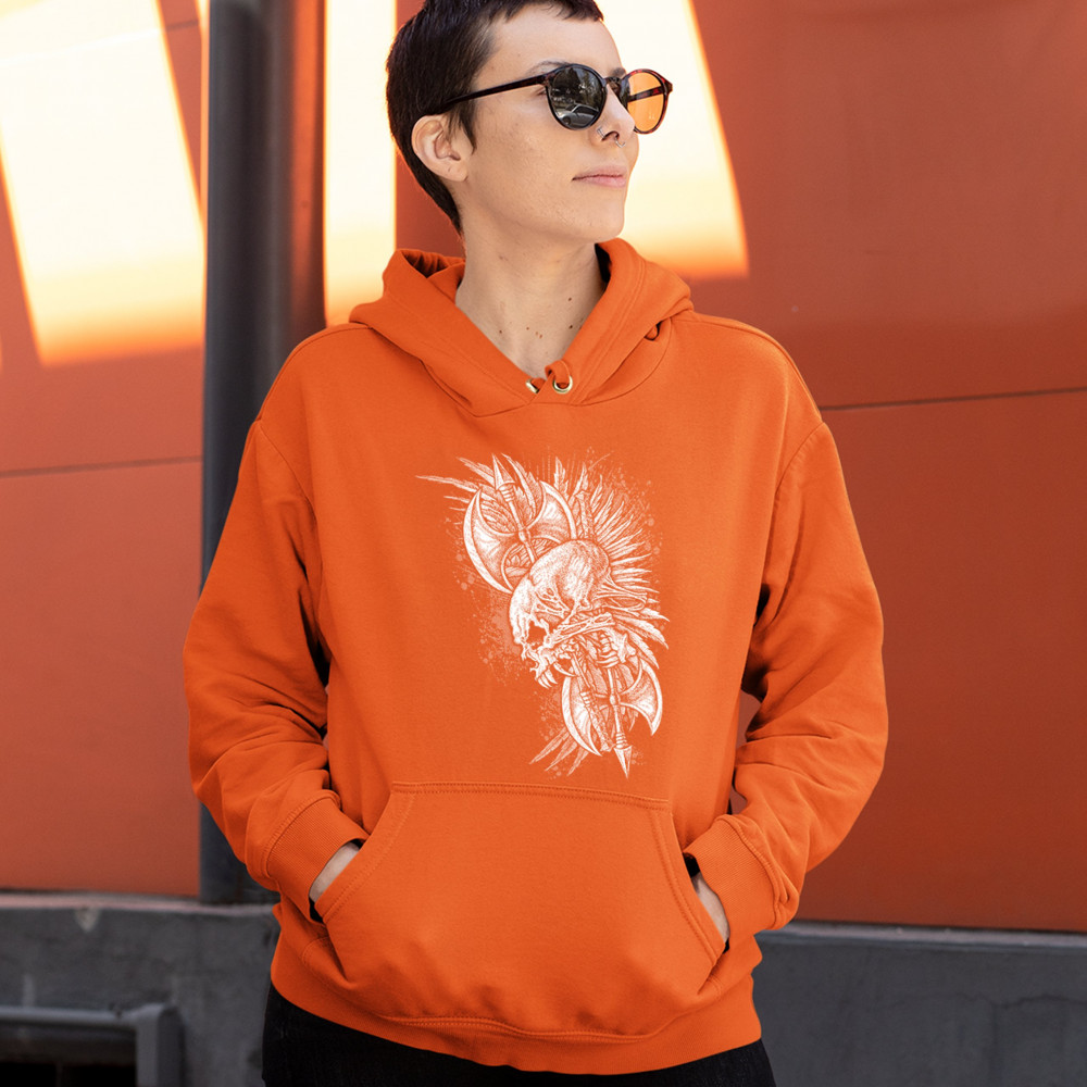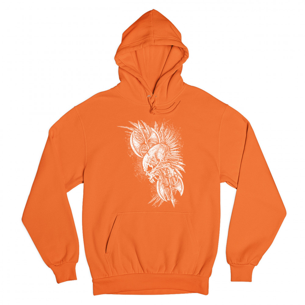 WINGED SKULL sweatshirt viking warrior skeleton labrys axe gothic hoodie orange