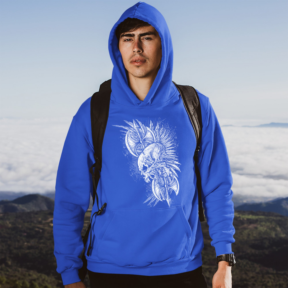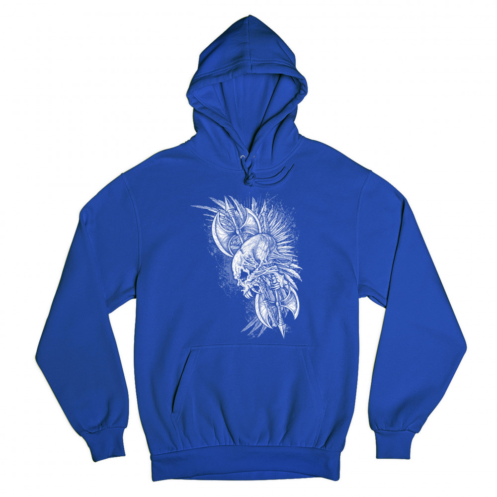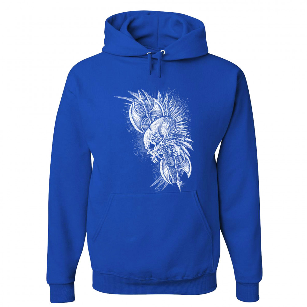 WINGED SKULL sweatshirt viking warrior skeleton labrys axe gothic hoodie royal blue