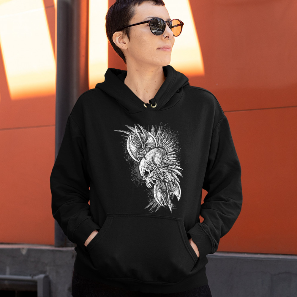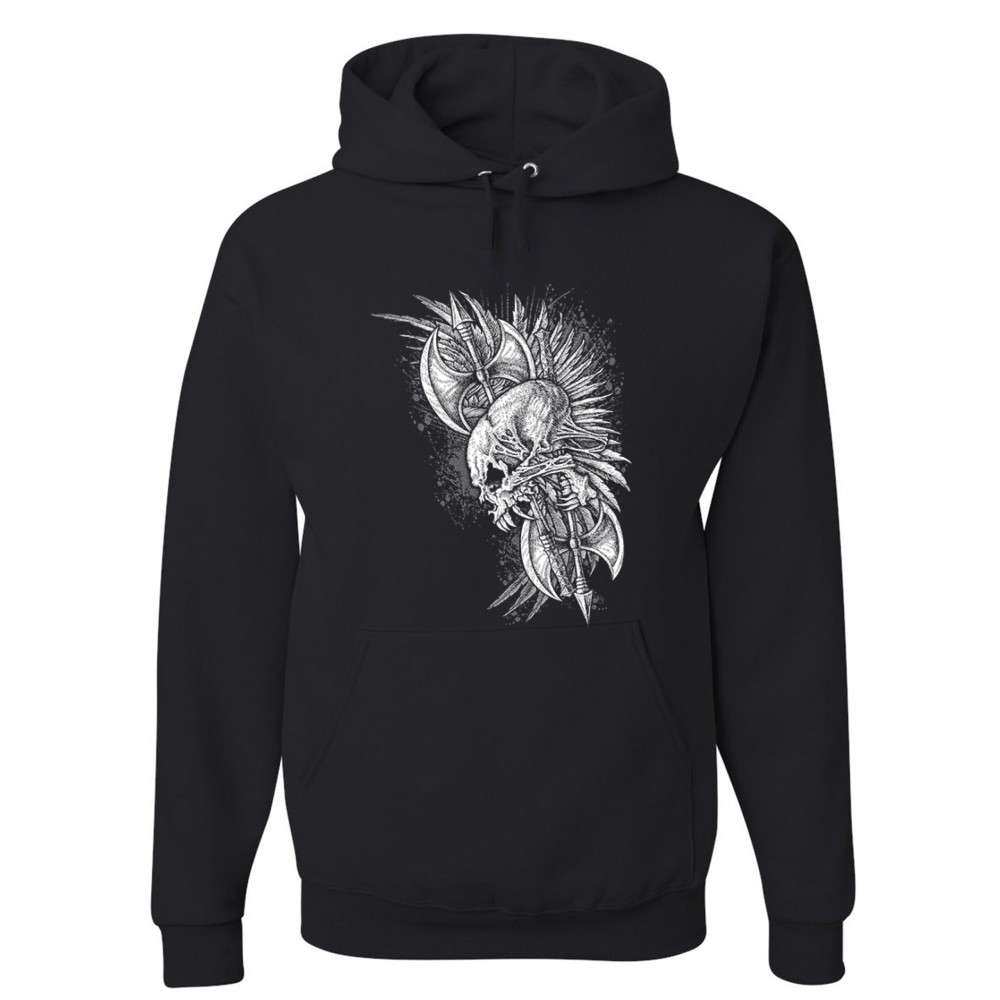 WINGED SKULL sweatshirt viking warrior skeleton labrys axe gothic hoodie black