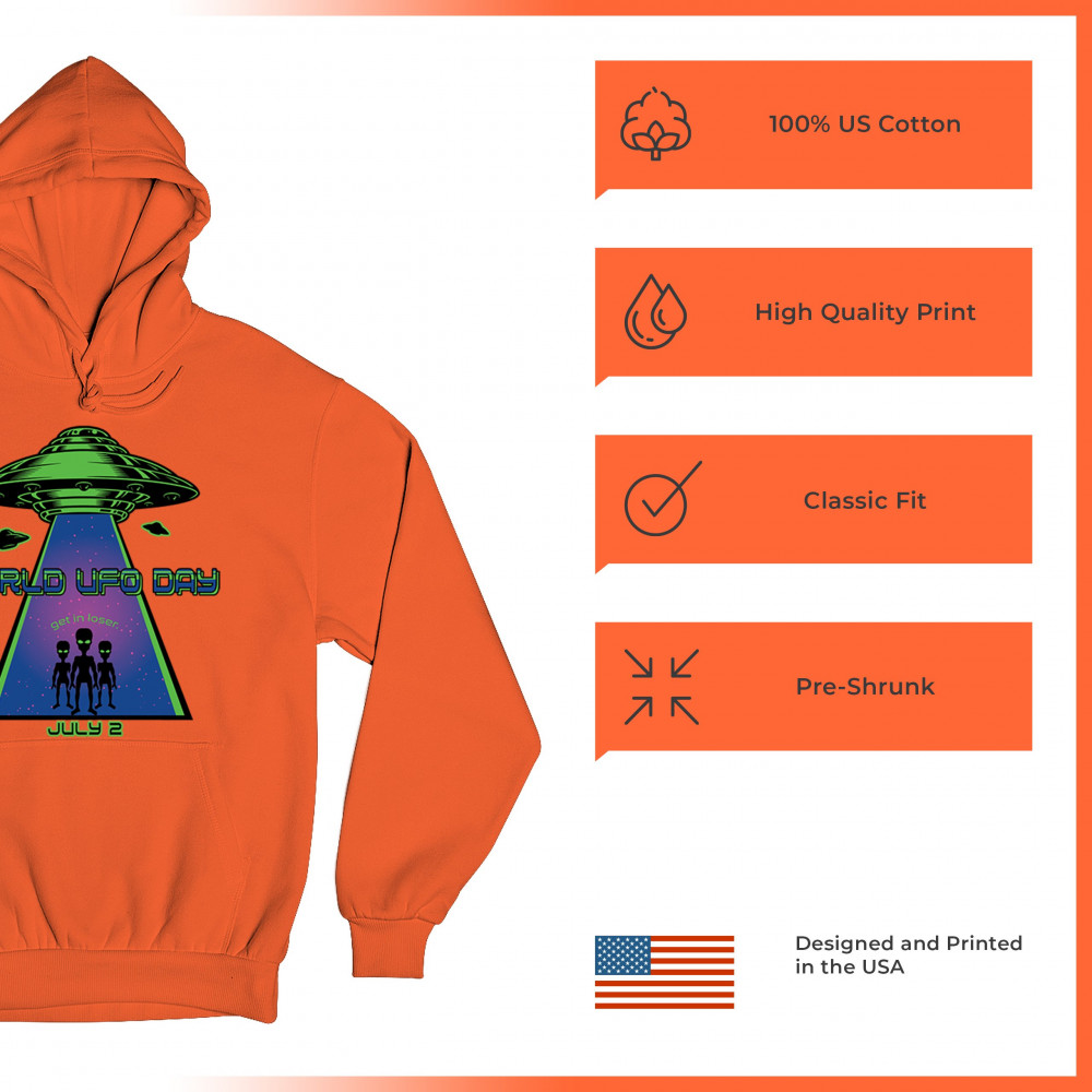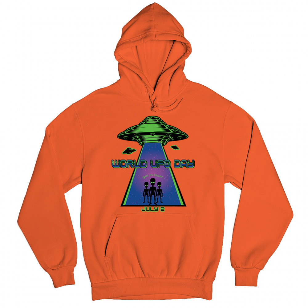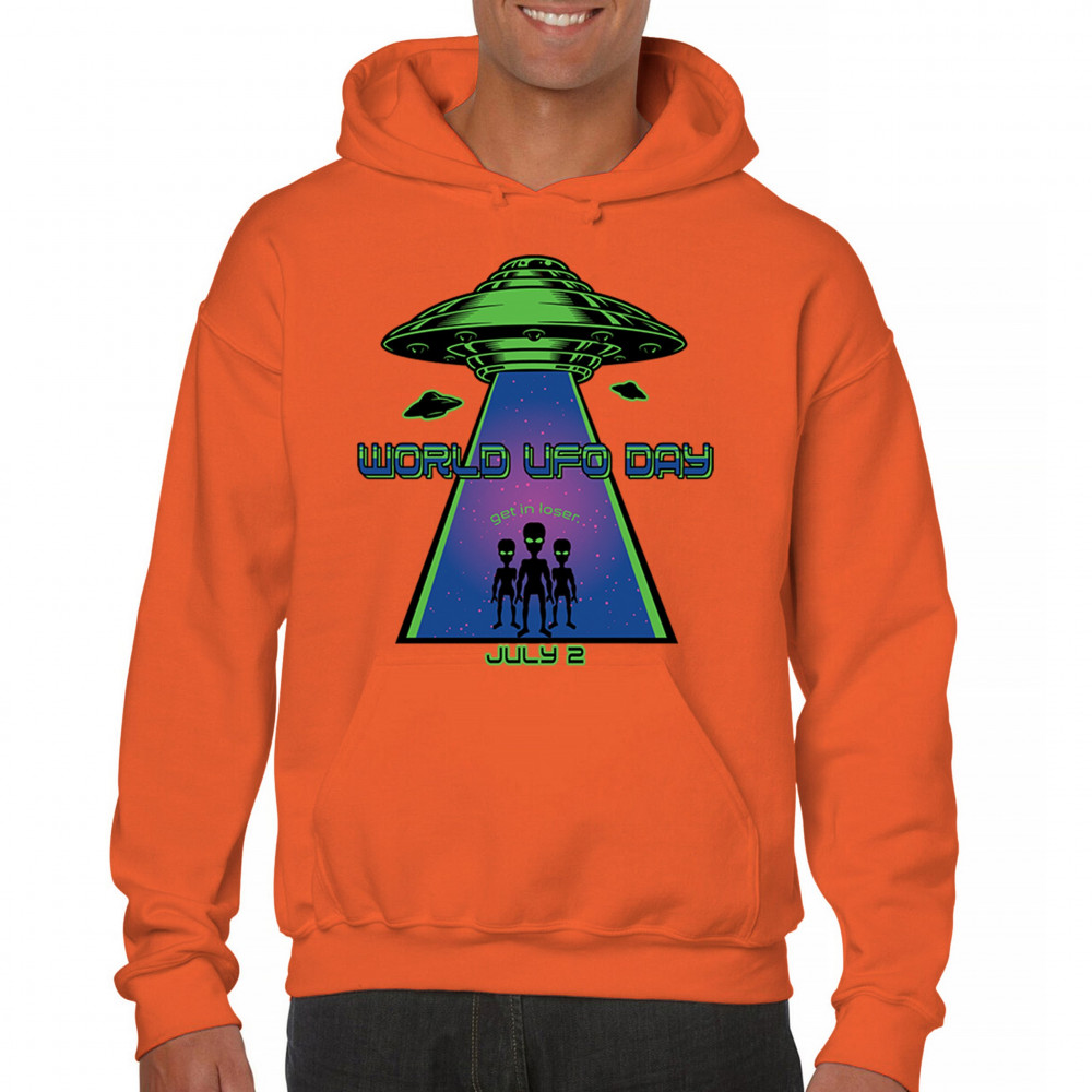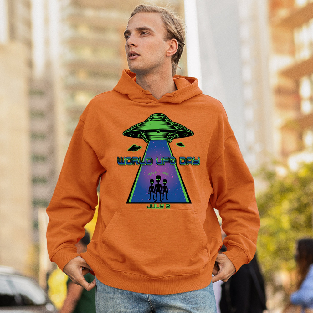 Join the celebration of World UFO Day with this unique design, featuring a detailed UFO beaming up three cheerful aliens with the phrase "Get in, loser." Perfect for those who are fascinated by the unknown and have a sense of humor about extraterrestrial life. Whether you're attending a UFO event, meeting with fellow enthusiasts, or just want to express your quirky style, this design is a must-have. Embrace the spirit of curiosity and fun with this eye-catching design for July 2nd.