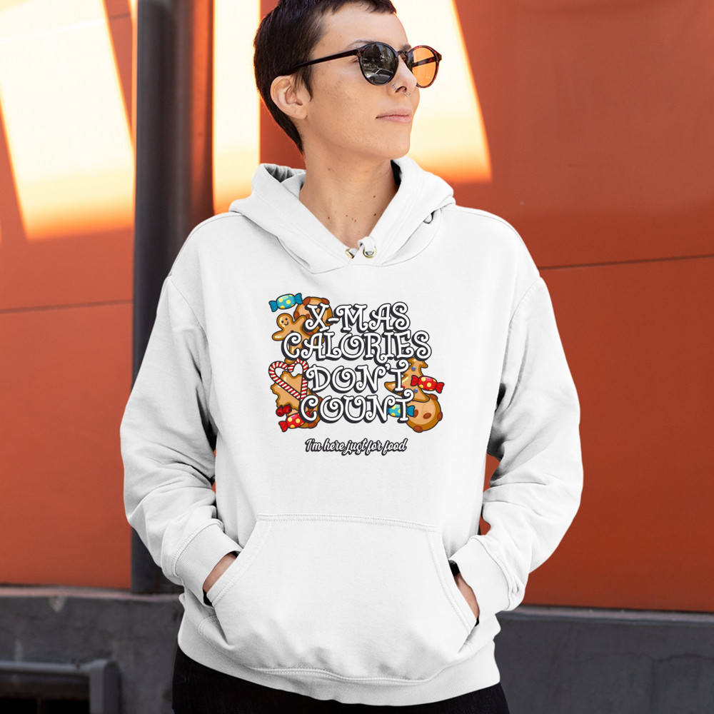 X-MAS CALORIES DON'T COUNT sweatshirt merry christmas naughty or nice hoodie white