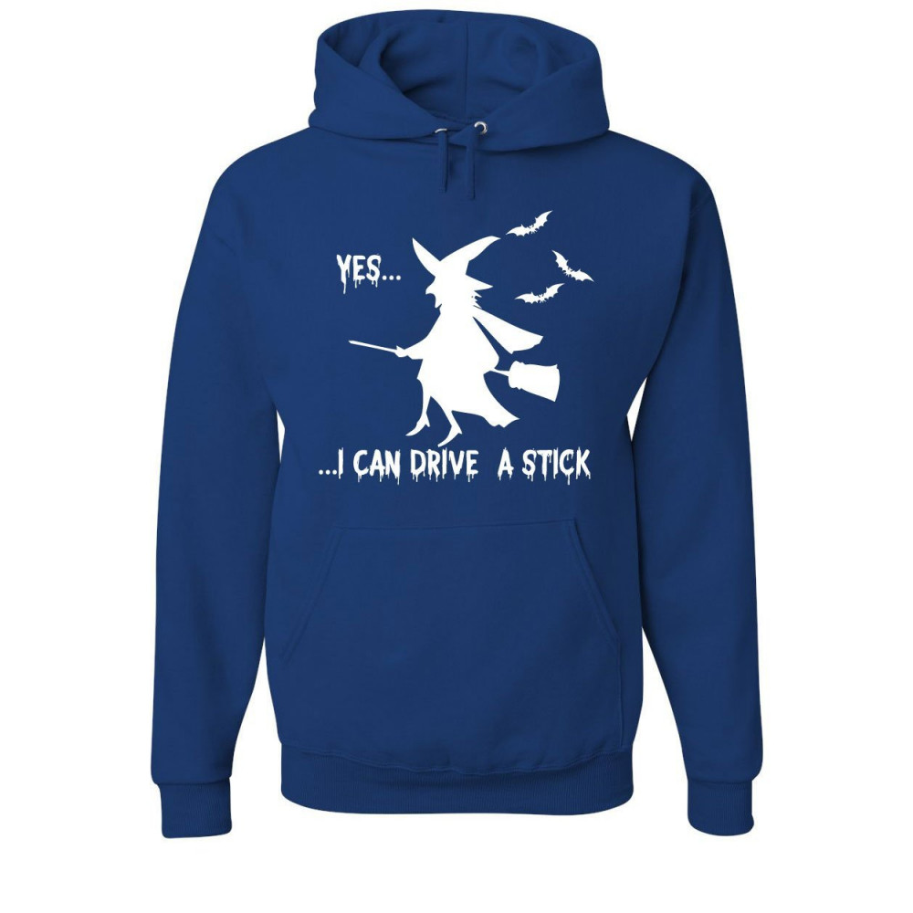 YES, I CAN DRIVE A STICK hoodie funny halloween witch sweatshirt royal blue