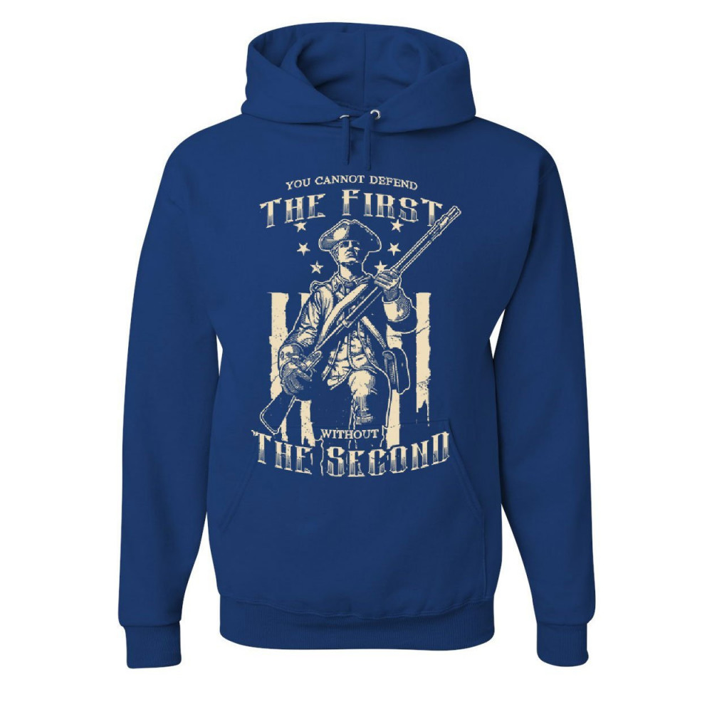 YOU CANNOT DEFEND THE FIRST WITHOUT THE SECOND you can't defend the first without the second hoodie militia 2a sweatshirt royal blue