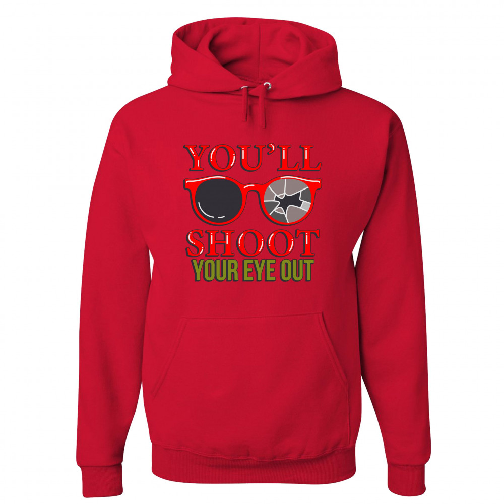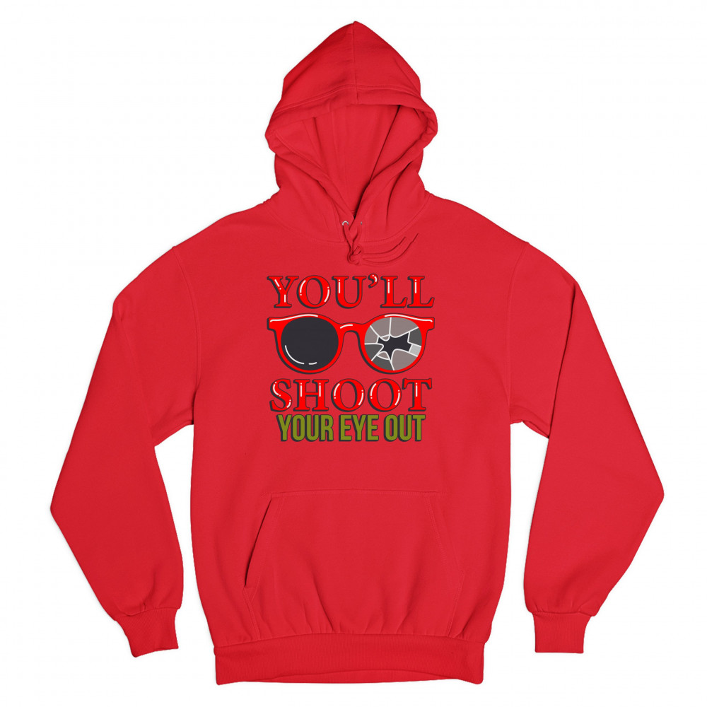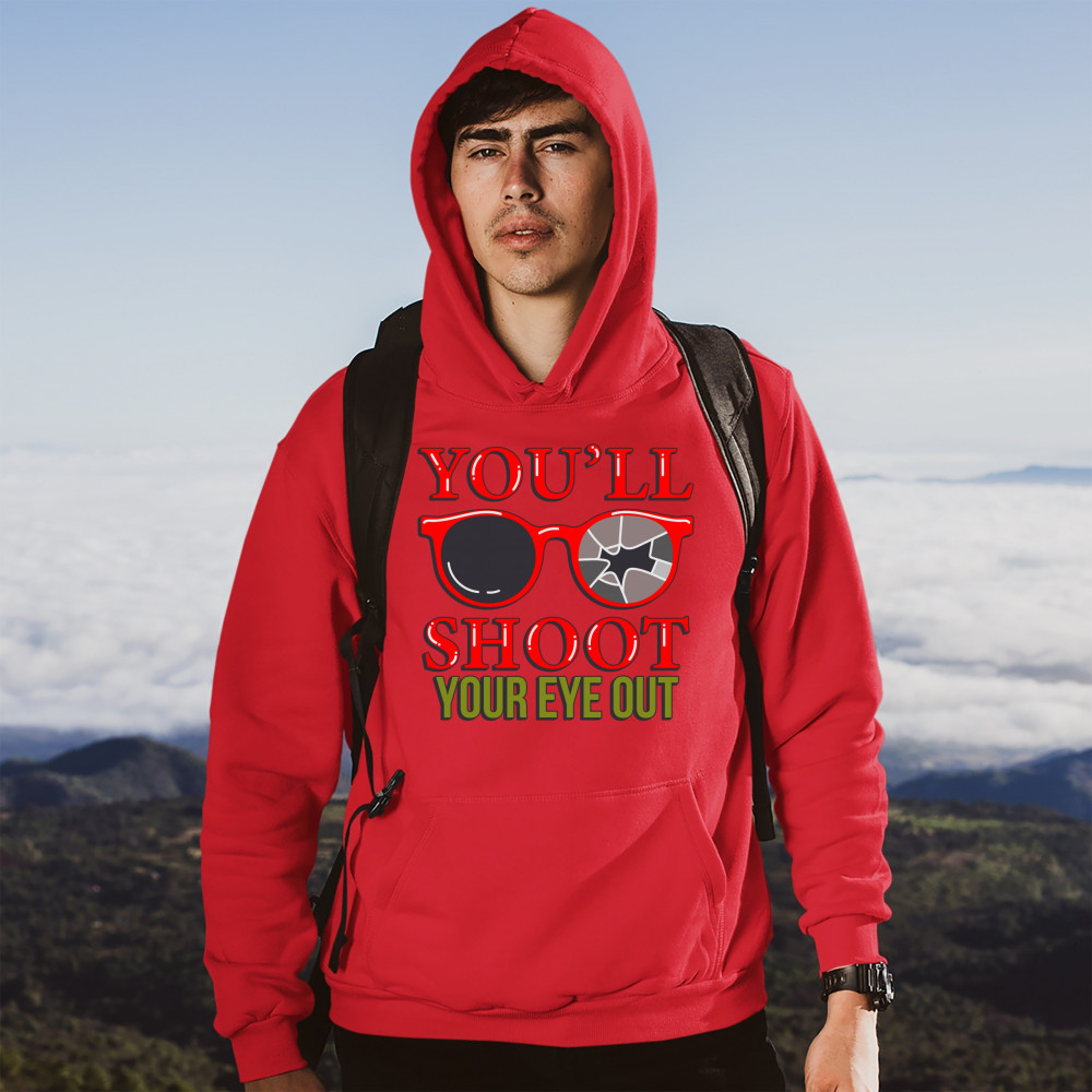 A print saying: "You'll shoot your eye out". The print features a pair of glasses with one lens cracked. The print is a reference to a famous Christams movie. Amazing choice to make people smile and spread positive vibes on Christmas Eve.