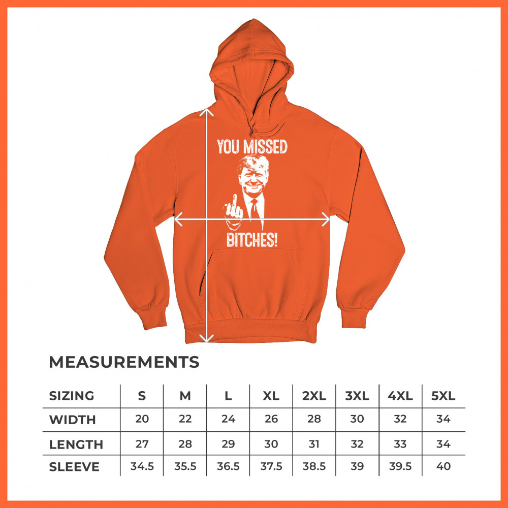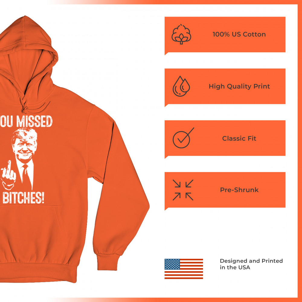 Commemorate Trump's resilience and determination with our bold "You Missed Bitches!" design. Show your support and patriotism.