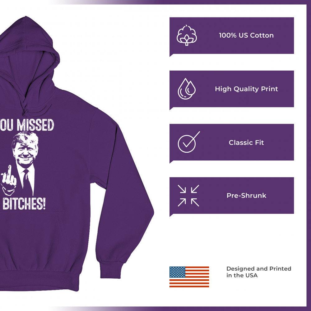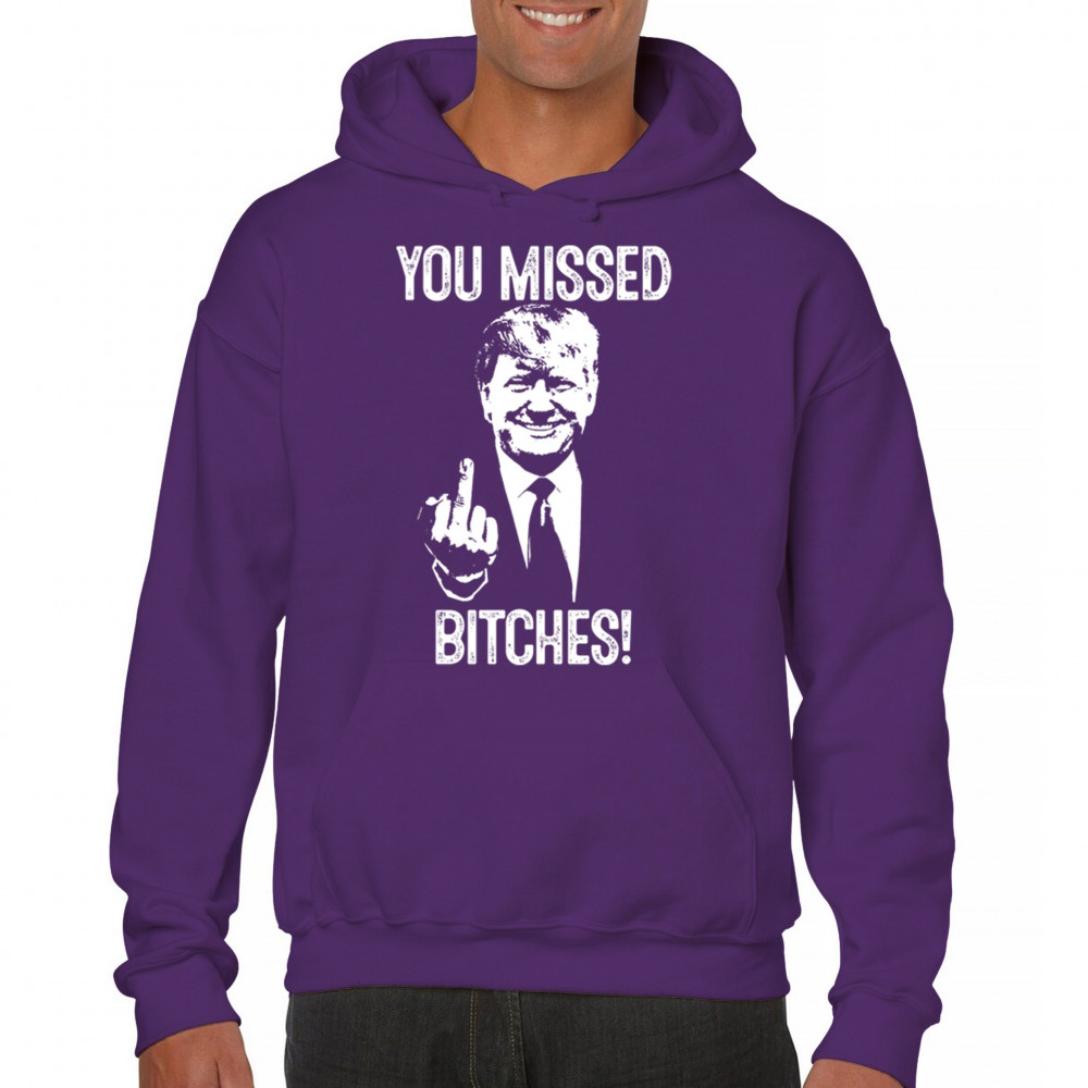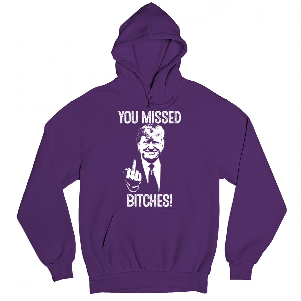 Commemorate Trump's resilience and determination with our bold "You Missed Bitches!" design. Show your support and patriotism.