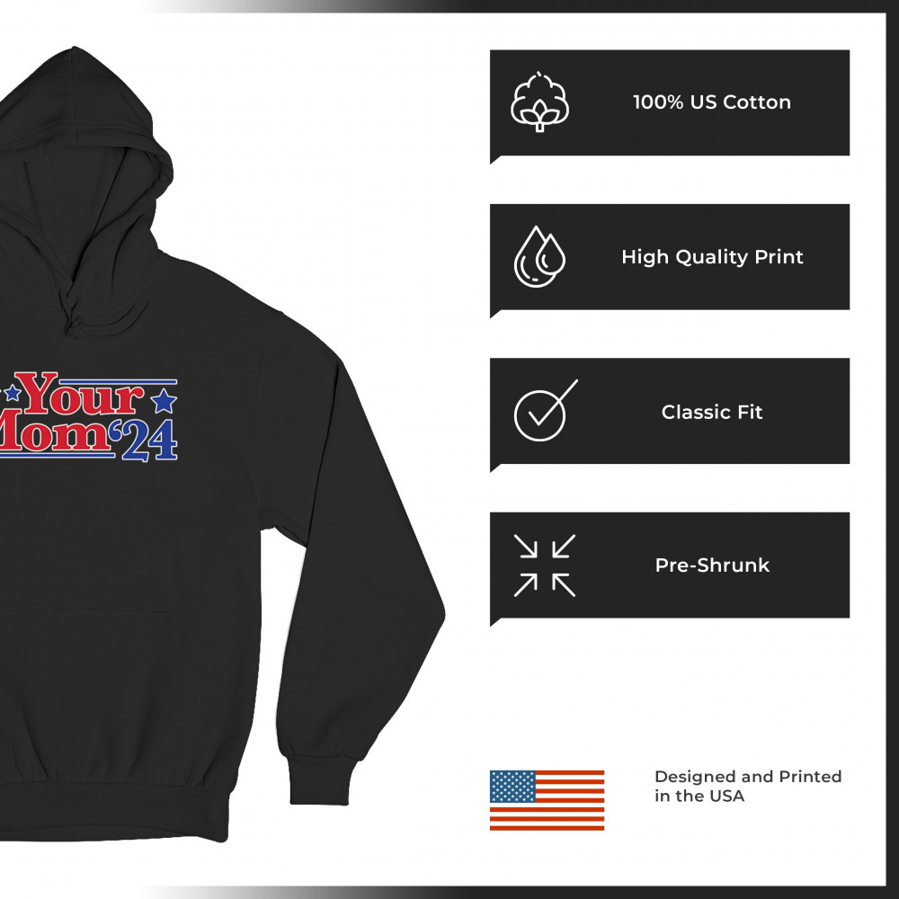 Show off your humor and style with the "Your Mom '24" design. Perfect for the 2024 election season, this design combines quality, comfort, and a playful political twist.