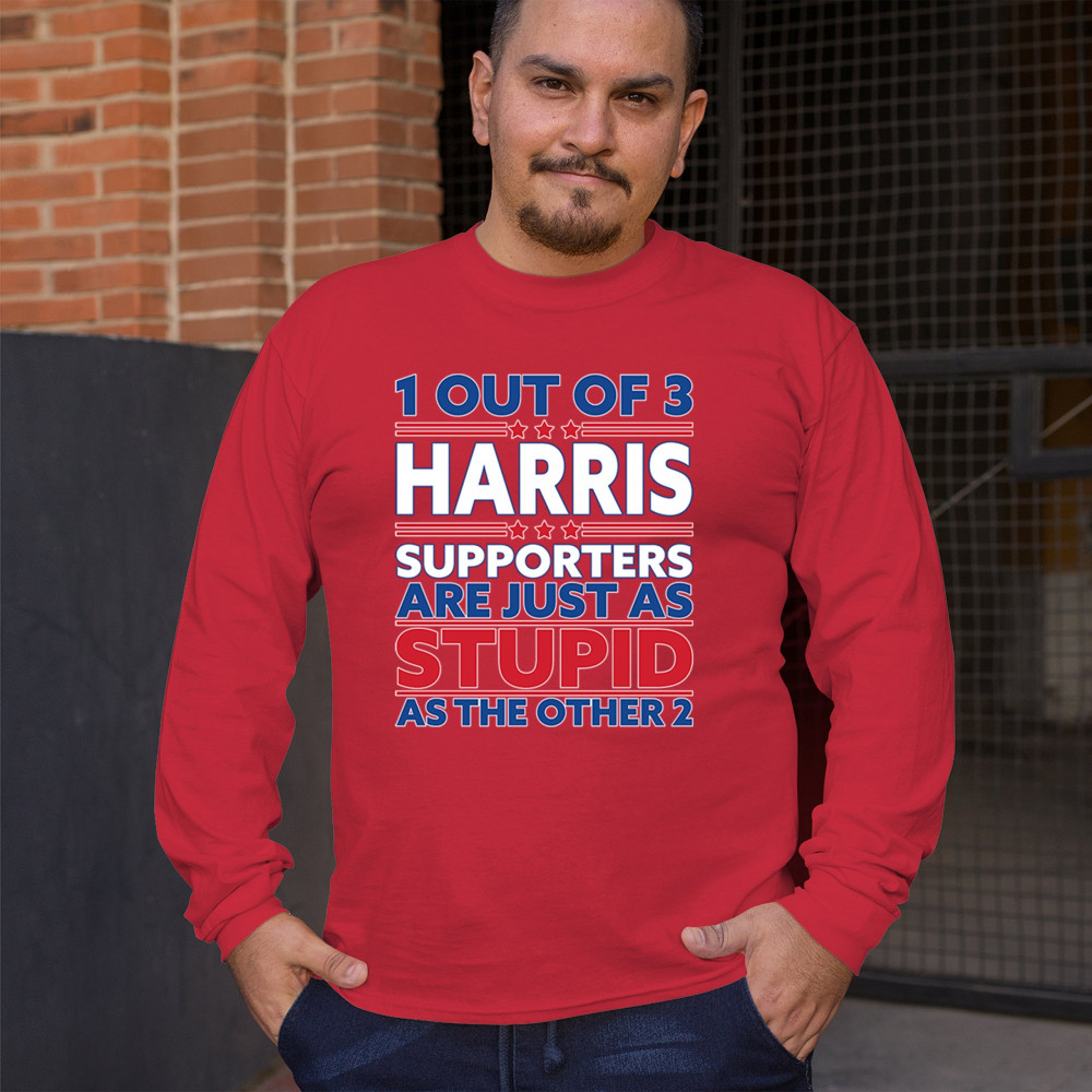 Celebrate your values with this humorous design that lightheartedly critiques Harris supporters while promoting your stance as a Trump supporter and conservative. Perfect for rallies, casual outings, or just everyday wear, this tee brings a smile and reinforces your commitment to the America First agenda. Make a bold statement and wear your beliefs on your sleeve—literally! A great conversation starter that embodies the spirit of fun and freedom.