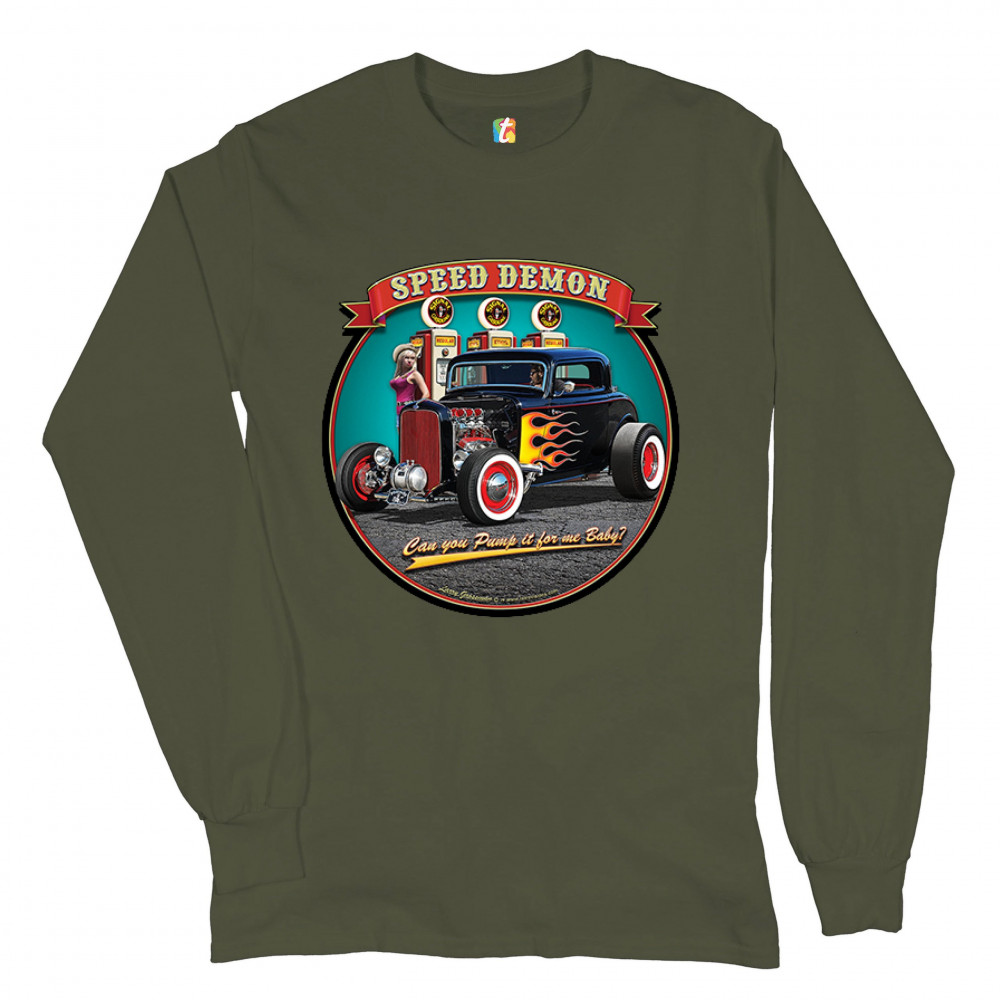 1932 DEUCE SPEED DEMON long sleeve t-shirt hot rod muscle car drag racing military green