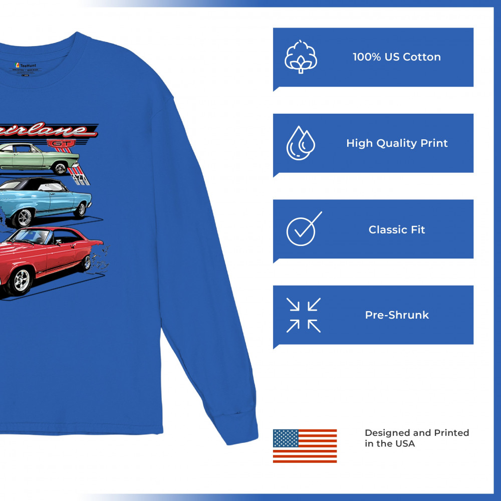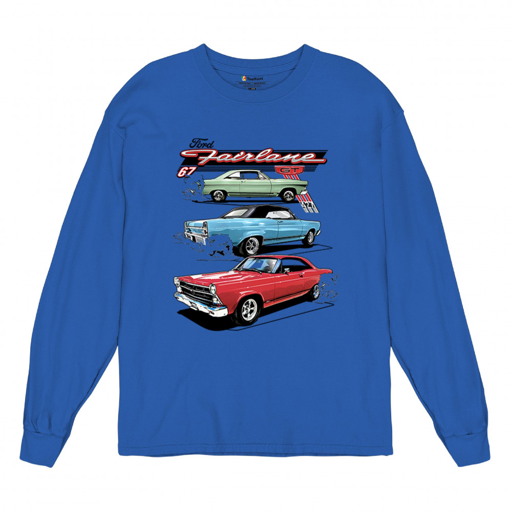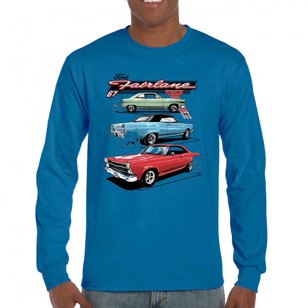 Celebrate the raw power of the 1967 Ford Fairlane GT with this burnout-charged design. Featuring three muscle cars in retro detail, it's made for vintage Ford collectors, classic car fans, and V8 enthusiasts. Whether you're heading to a show or wrenching in the garage, this design brings the roar of the 60s.