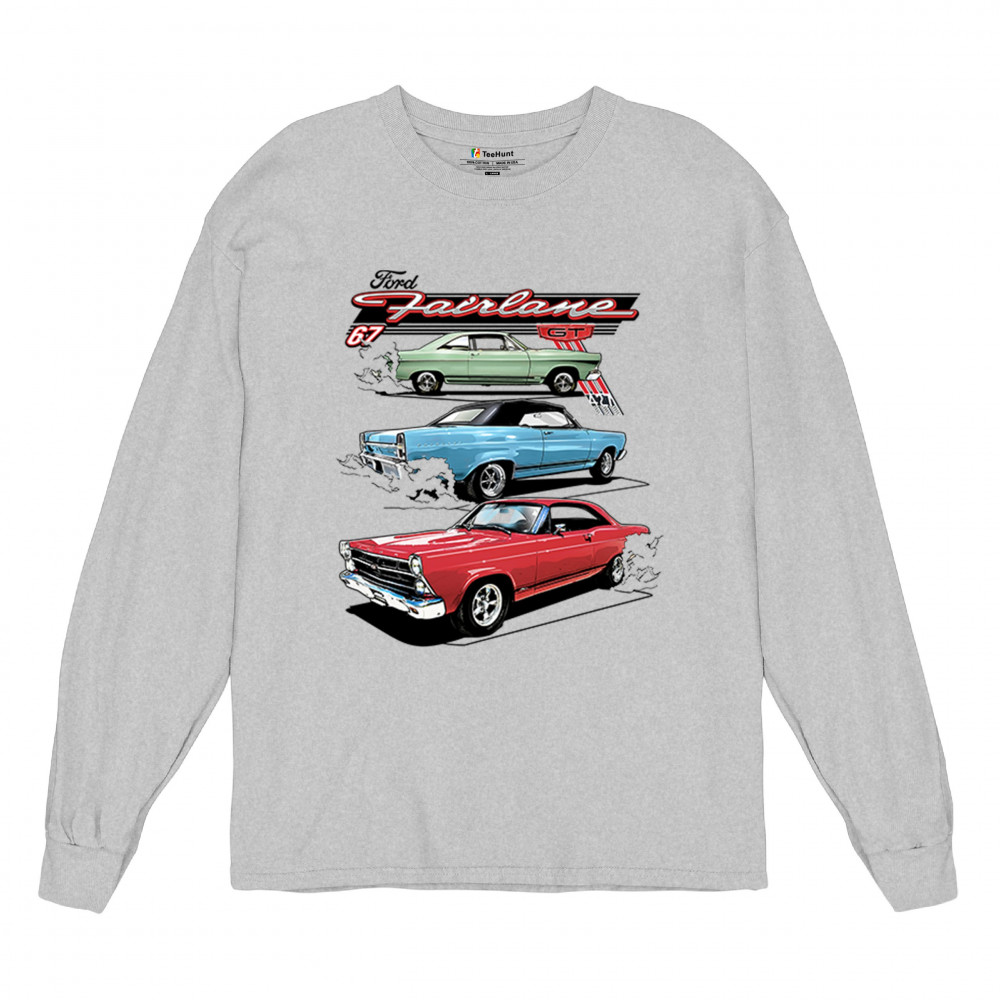 Features three 1967 Ford Fairlane GTs with retro burnout style. Great for muscle car fans, Ford collectors, car shows, and vintage meetups.