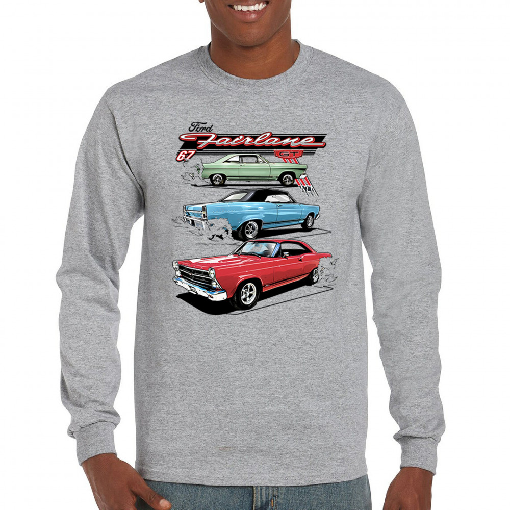 Celebrate the raw power of the 1967 Ford Fairlane GT with this burnout-charged design. Featuring three muscle cars in retro detail, it's made for vintage Ford collectors, classic car fans, and V8 enthusiasts. Whether you're heading to a show or wrenching in the garage, this design brings the roar of the 60s.