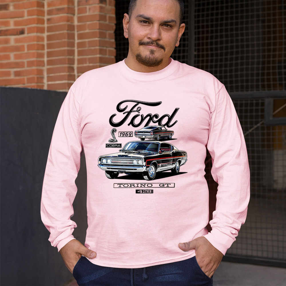 Celebrate raw muscle with this 1969 Ford Torino GT Cobra design. Featuring racing stripes, fastback lines, and Cobra detailing, it’s a standout piece for vintage car collectors, Ford lovers, and fans of Detroit power. Whether on display in a garage or worn to an auto show, it roars with classic performance pride.