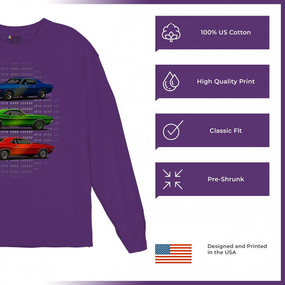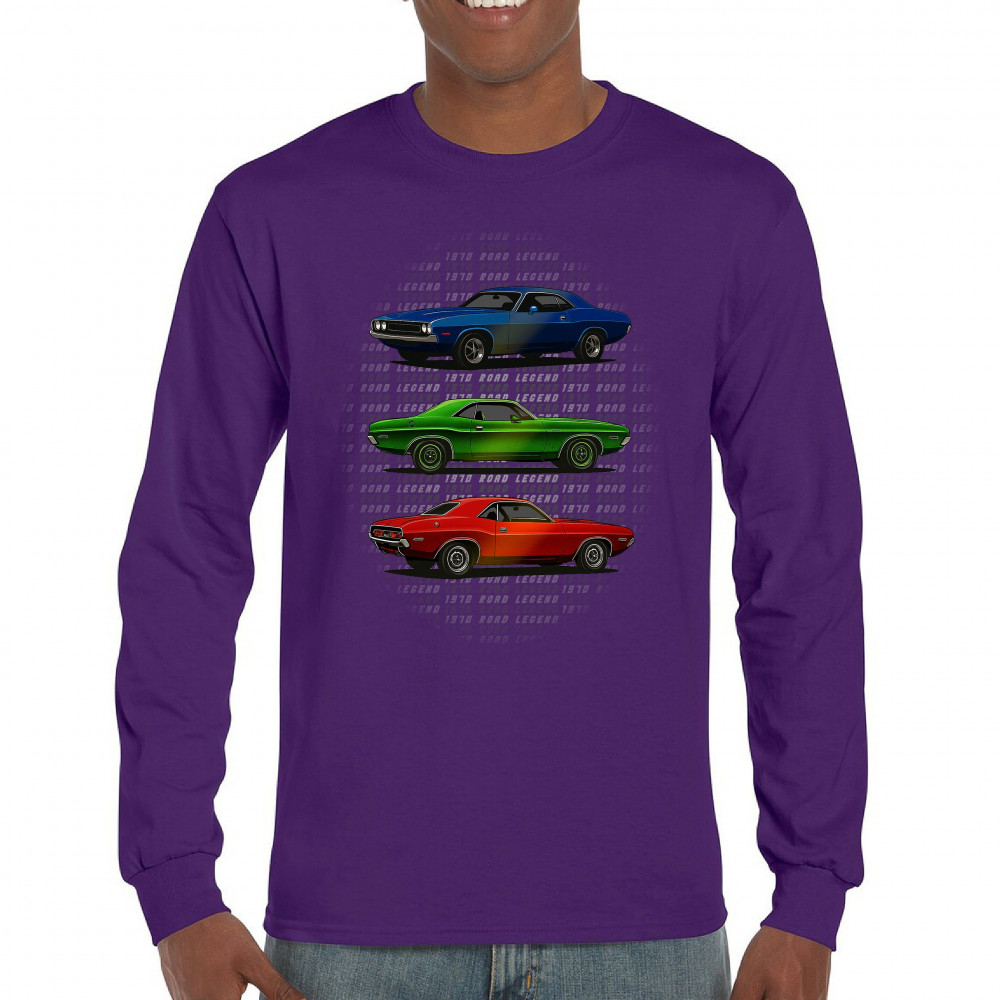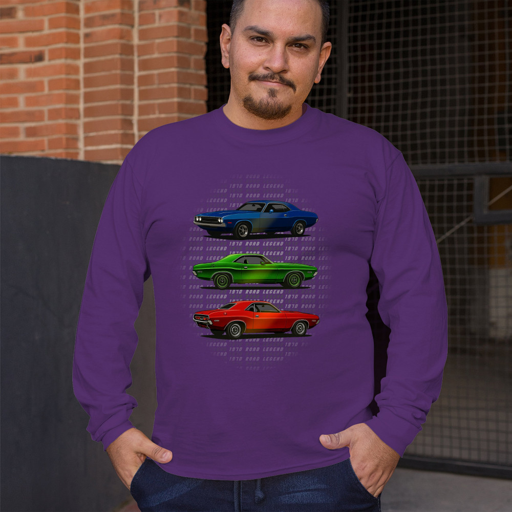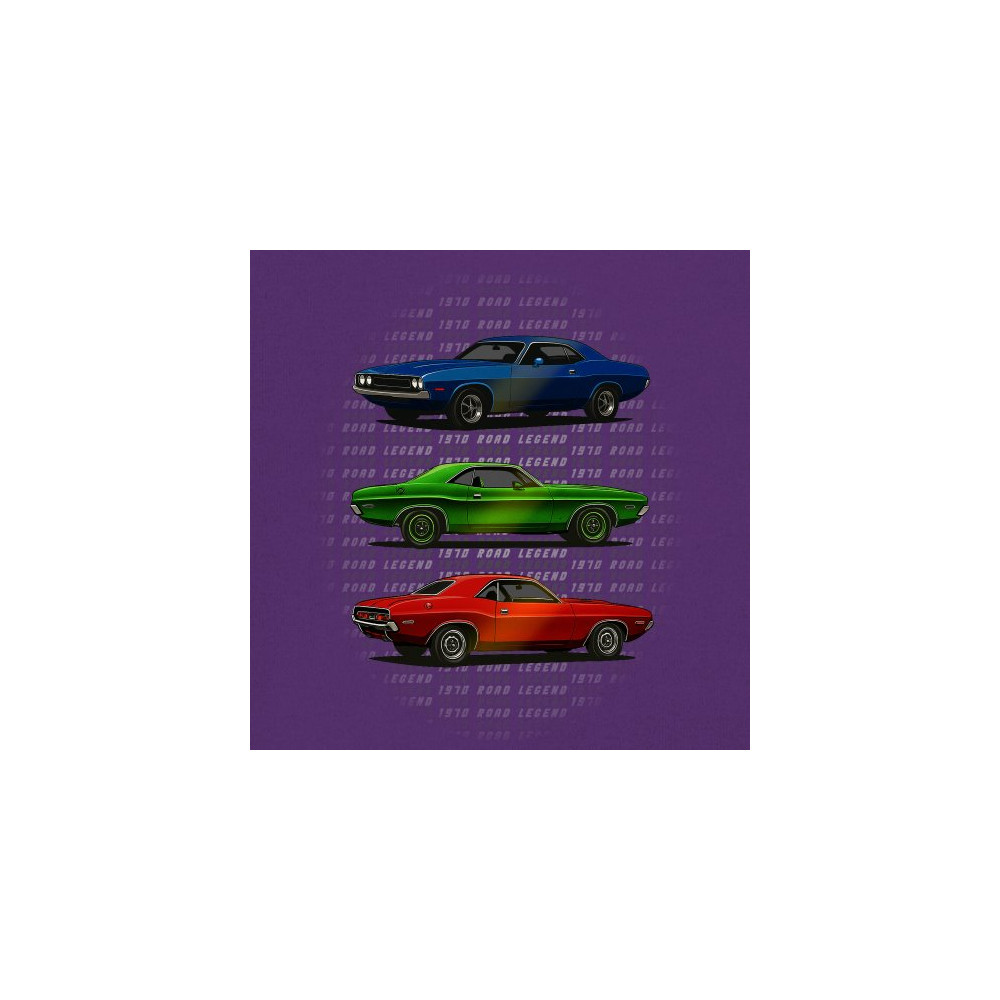 Three bold 1970 muscle cars, stacked in red, green, and blue, celebrate vintage power and road legend status. This retro-inspired design captures the essence of American car culture—made for gearheads, V8 fans, and anyone who lives for classic performance, heritage, and style.