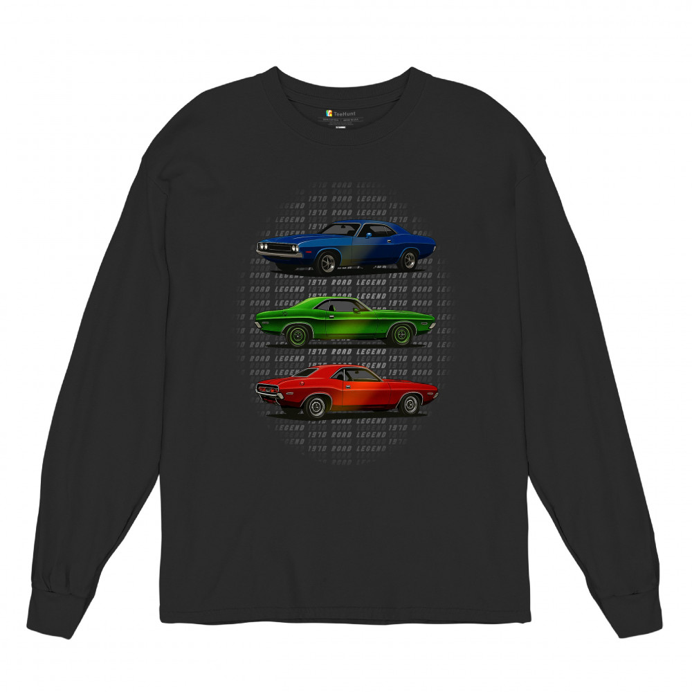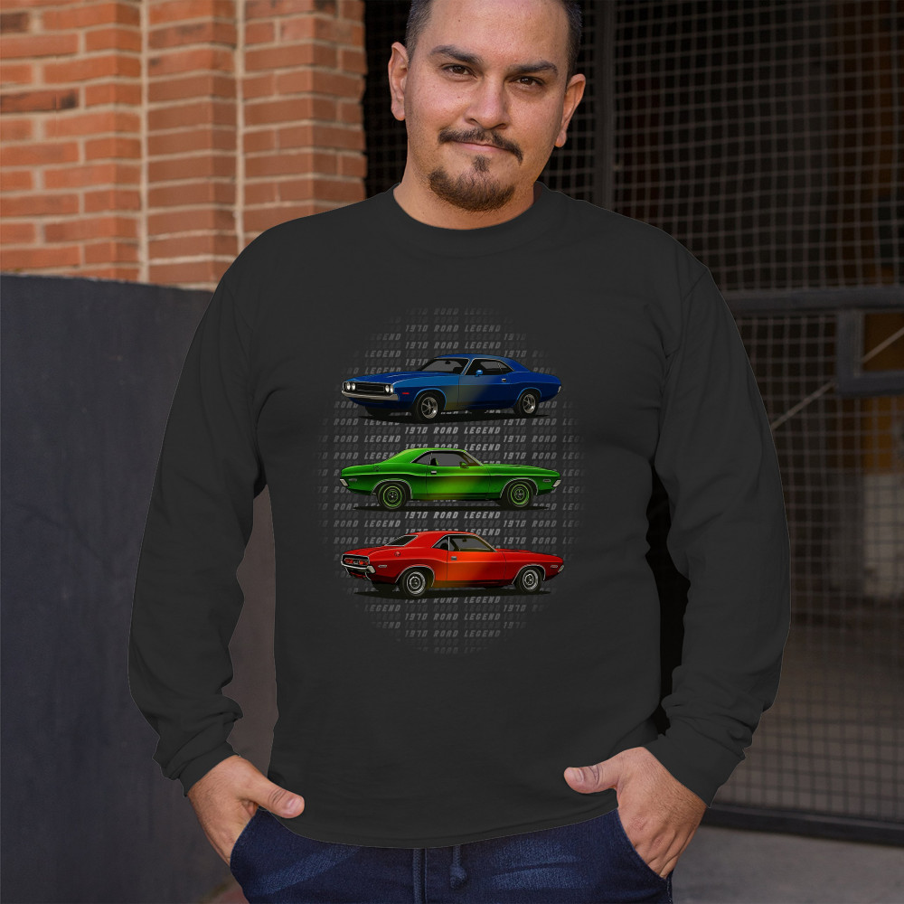 Three bold 1970 muscle cars, stacked in red, green, and blue, celebrate vintage power and road legend status. This retro-inspired design captures the essence of American car culture—made for gearheads, V8 fans, and anyone who lives for classic performance, heritage, and style.