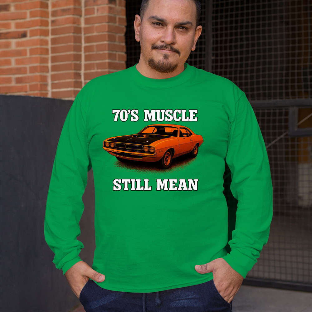 Celebrate vintage horsepower with this bold 70s muscle car design that proves it's still mean. Features classic styling, aggressive stance, and old-school V8 performance pride. A must-have for retro car collectors, gearheads, and muscle enthusiasts who live for raw American power.