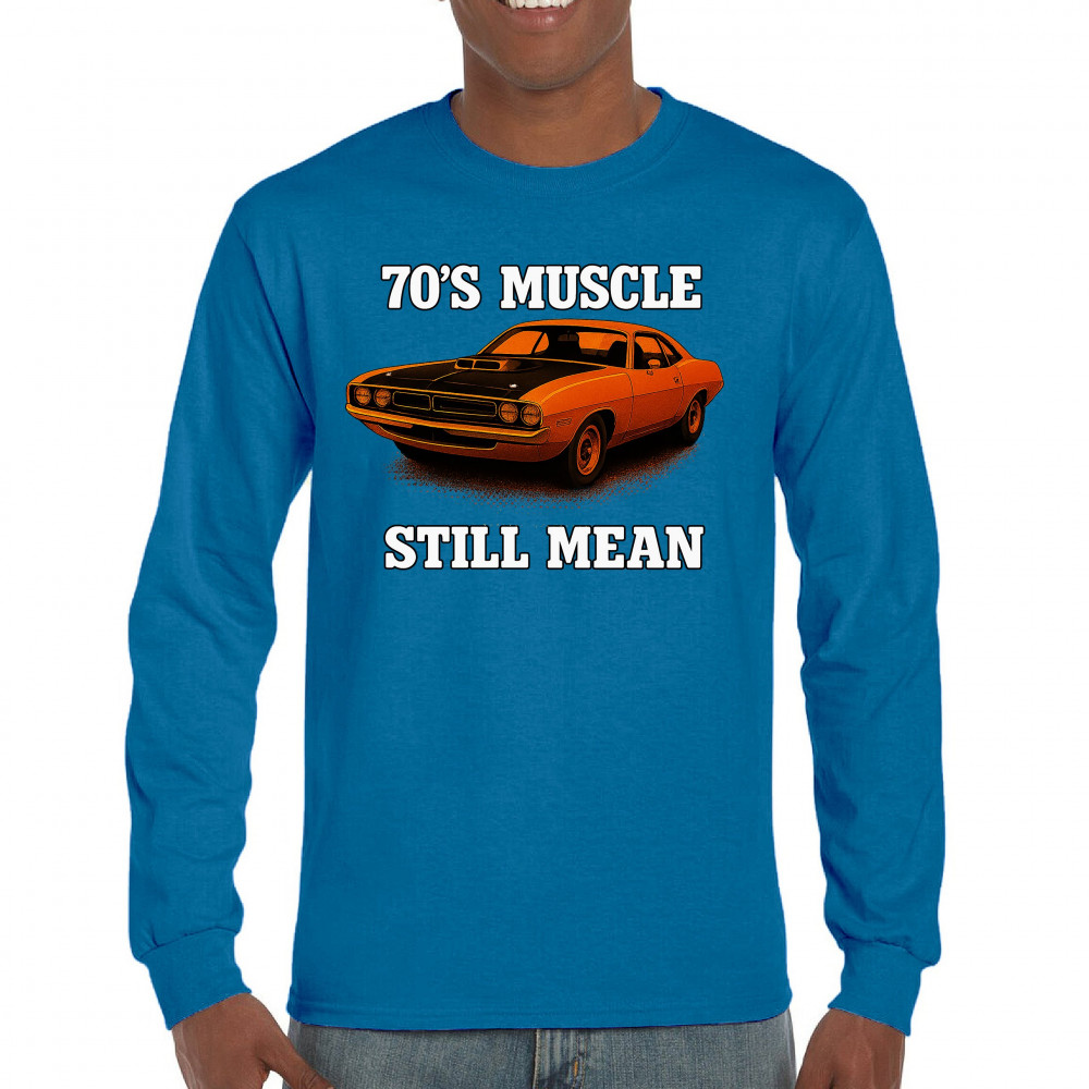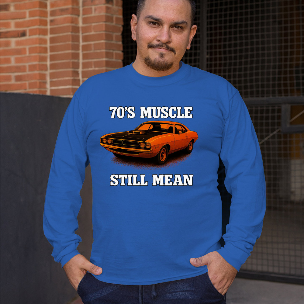 Celebrate vintage horsepower with this bold 70s muscle car design that proves it's still mean. Features classic styling, aggressive stance, and old-school V8 performance pride. A must-have for retro car collectors, gearheads, and muscle enthusiasts who live for raw American power.
