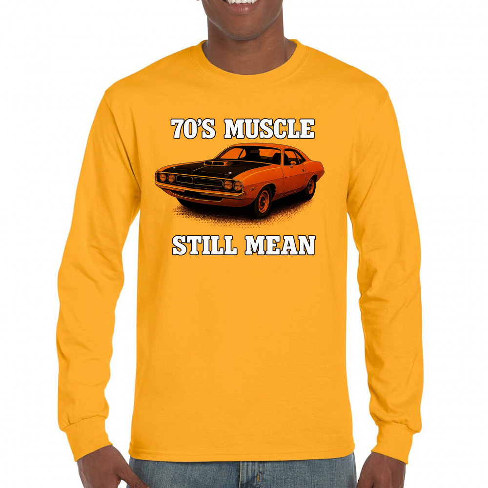 Celebrate vintage horsepower with this bold 70s muscle car design that proves it's still mean. Features classic styling, aggressive stance, and old-school V8 performance pride. A must-have for retro car collectors, gearheads, and muscle enthusiasts who live for raw American power.