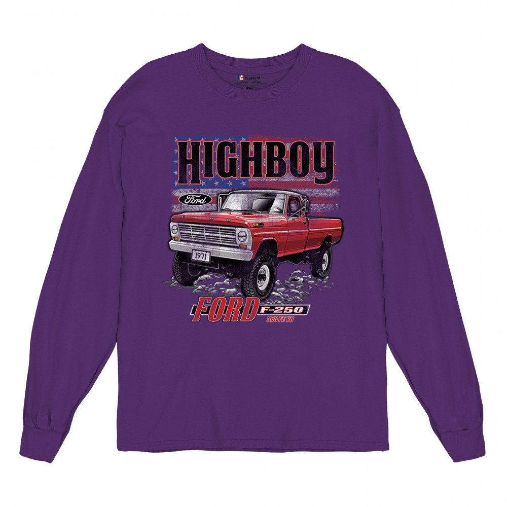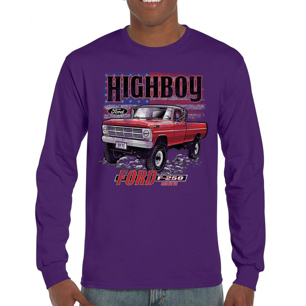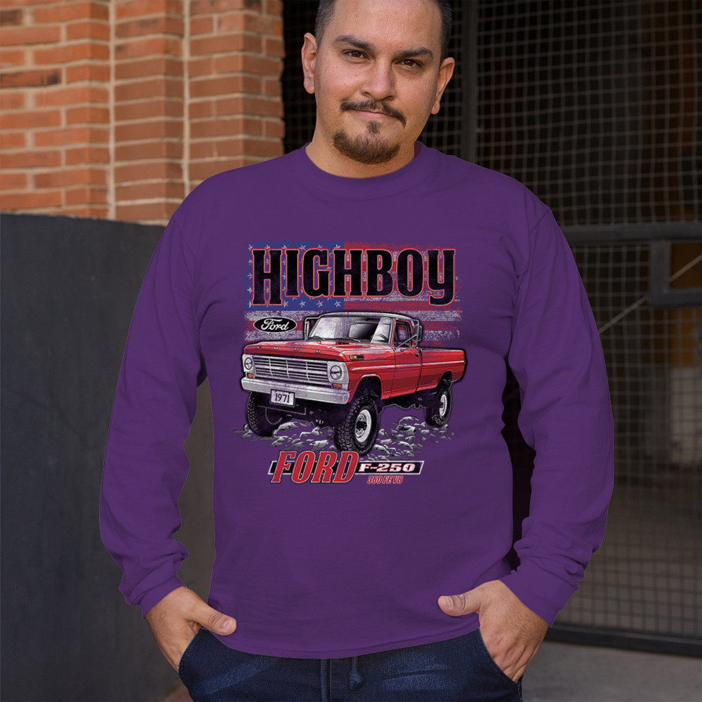 This vintage truck design features a 1971 Ford F-250 Highboy 4x4 with a classic lifted stance and patriotic flag background. Bold and nostalgic, it’s perfect for classic truck fans, 4x4 lovers, off-roaders, and collectors who appreciate American V8 tradition. Show it off at truck shows, meets, or cruise nights.