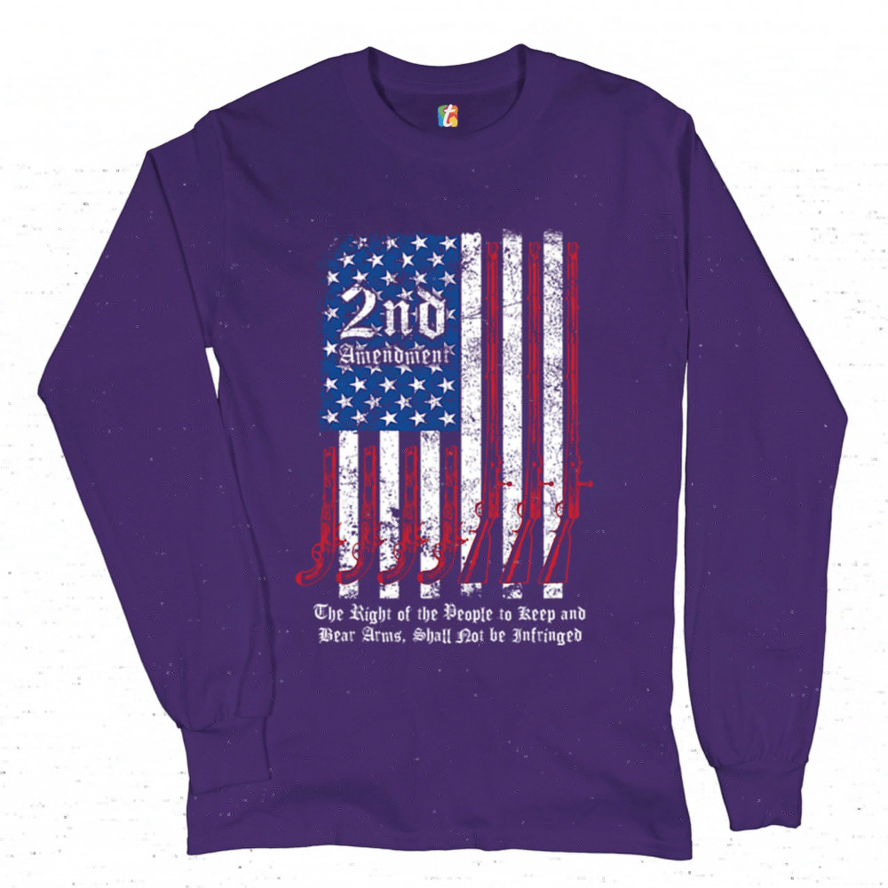 A print featuring a distressed American flag with pistols and muskets instead of red stripes. Atop of the 50 stars "2nd Amendment" is written. The print says: "The Right of the People to Keep and Bear Arms, Shall Not be Infringed ". Great choice for any g